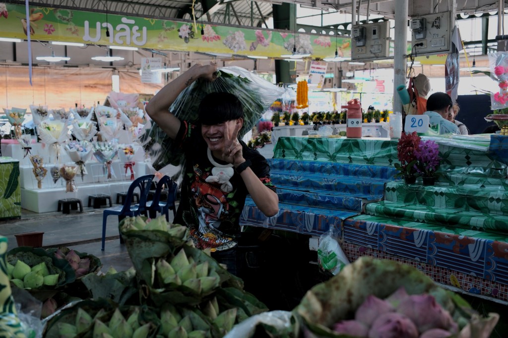 Première étape de la journée, le marché aux fleurs de Bangkok (Talak Pak Khlong), avec des dizaines de stands de fleurs fraîches. Ils fabriquent également des guirlandes de fleurs qui sont censées porter bonheur, pour les offrandes dans les temples.