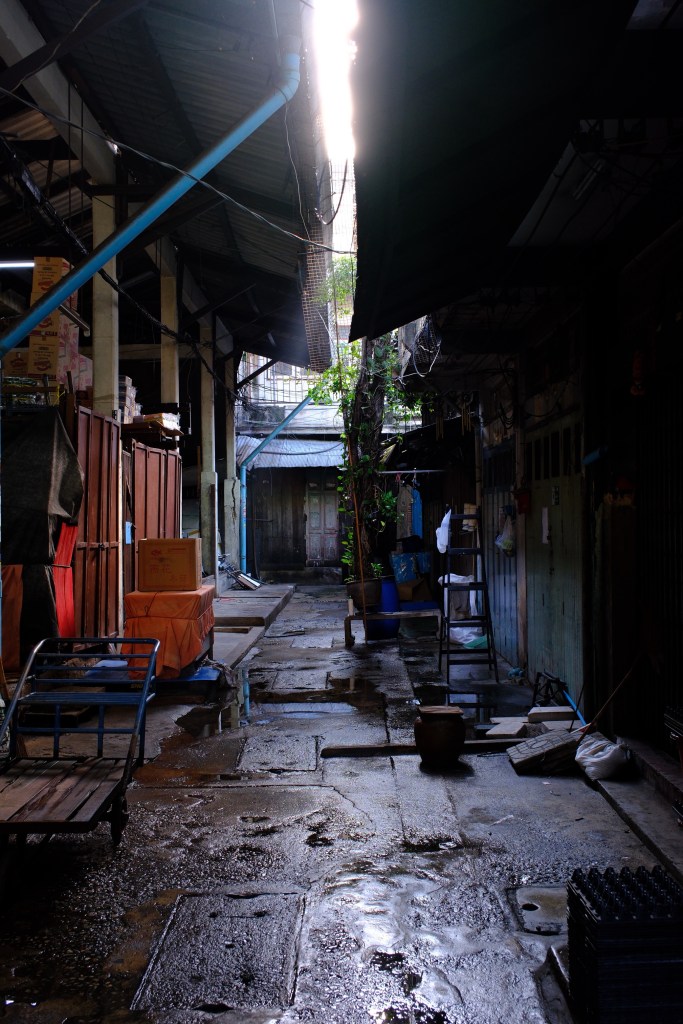 Sur le chemin, nous croisons des petites ruelles sombres très photogéniques, ainsi que de multiples petits marchés plus ou moins odorants (celui-ci vendait du poisson séché).