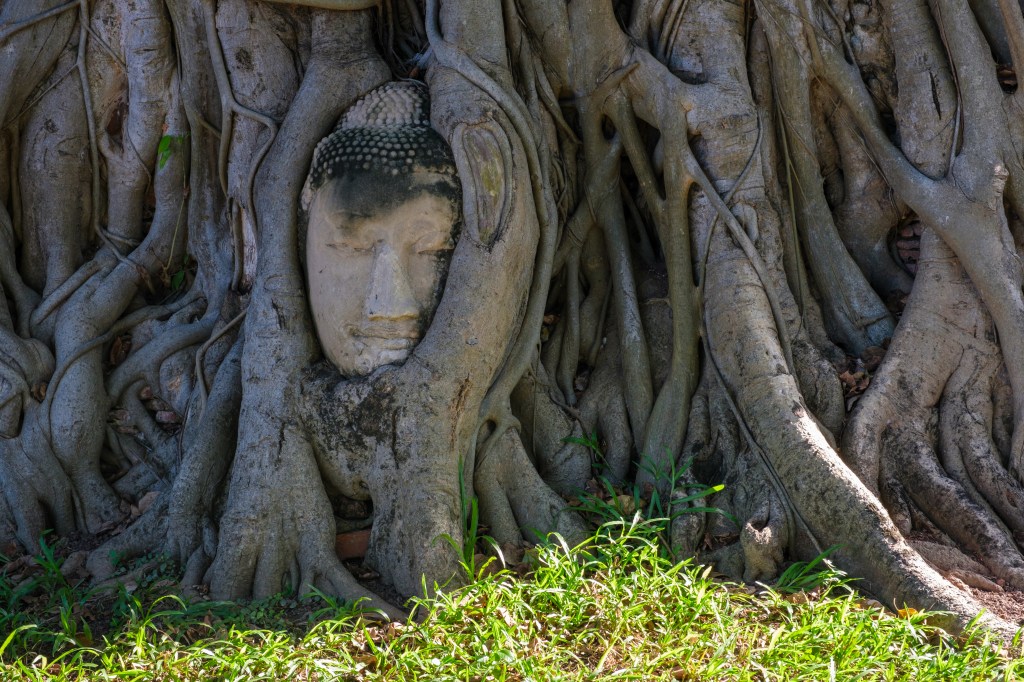 Puis nous entrons dans le Wat Mahathat, le temple plus touristique de la ville en raison d’une curiosité : une tête de Bouddha emprisonnée dans les racines d’un grand banian. Tout le monde se presse pour la prendre en photo. Le reste du site est très joli et bien conservé.