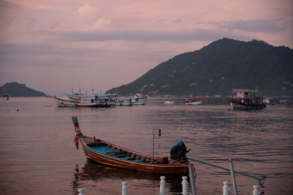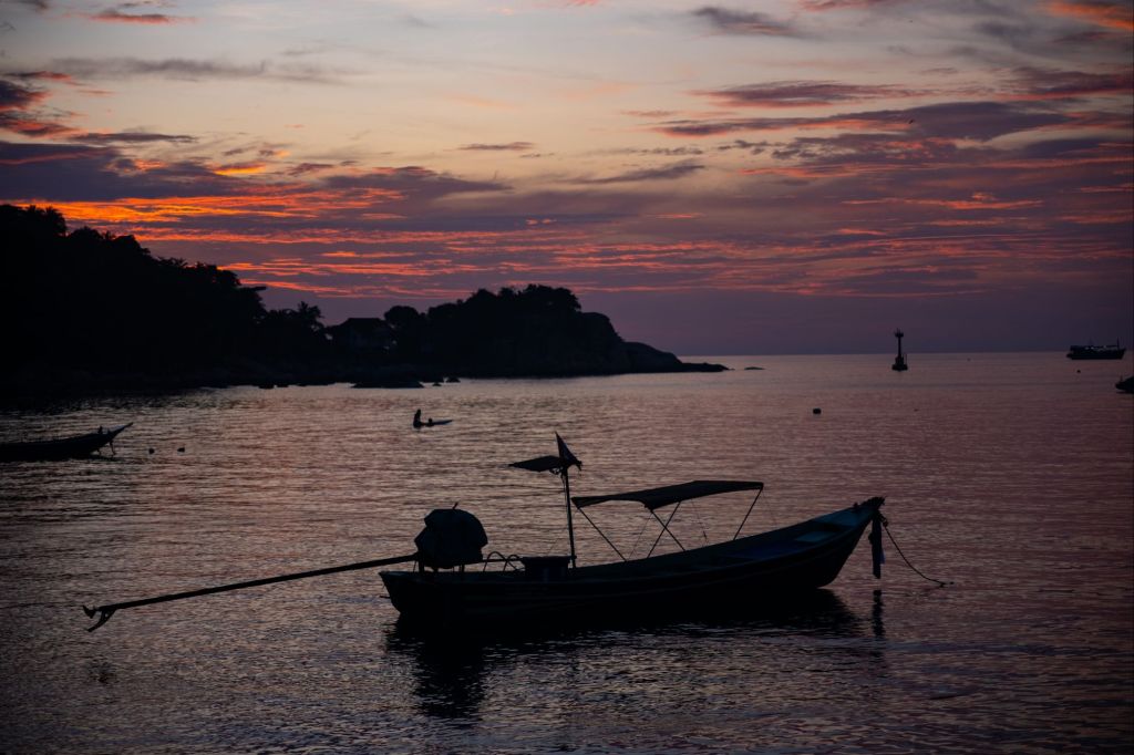 Lever à 7h pour ce premier jour de plongée sur l’île. Nous plongeons deux fois, les spots sont très jolis, ce sont plein de petits rochers entre lesquels nous slalomons. Les coraux sont magnifiques et il y a plein de poissons de toutes les couleurs. L’ambiance sur le bateau est vraiment sympa, et Maxime, notre dive master, est très gentil et a plein de choses à raconter. Nous allons d’ailleurs manger avec lui à midi, chez Bam Bam, un bon restaurant thaïlandais du coin. Nous avons passé une bonne partie de l’après-midi à discuter voyage avec lui, et il nous a raconté ses pérégrinations à moto en Asie du Sud Est ces derniers mois. Puis nous traversons l’île en direction de Tanote bay, pour refaire un peu de snorkeling avant le coucher du soleil.