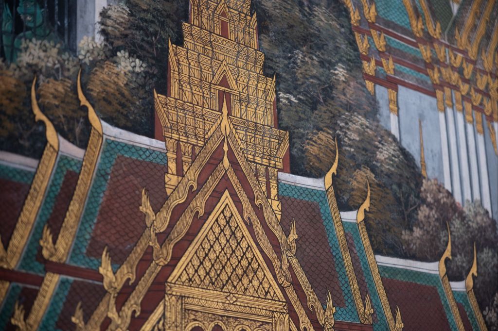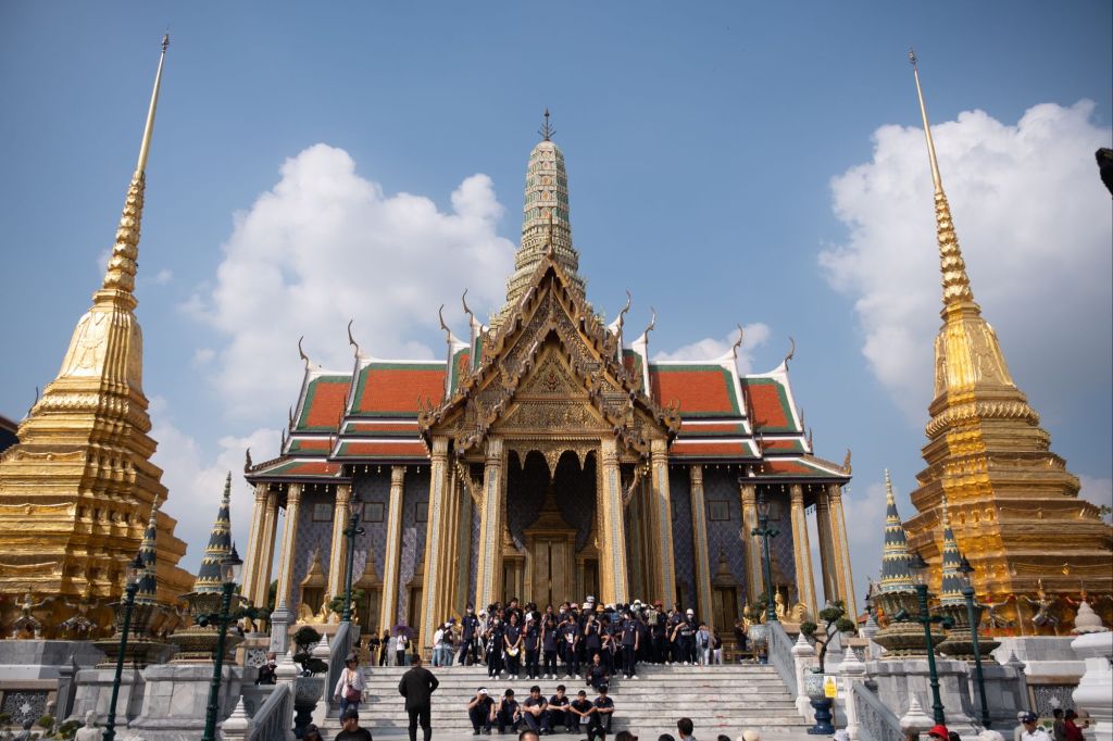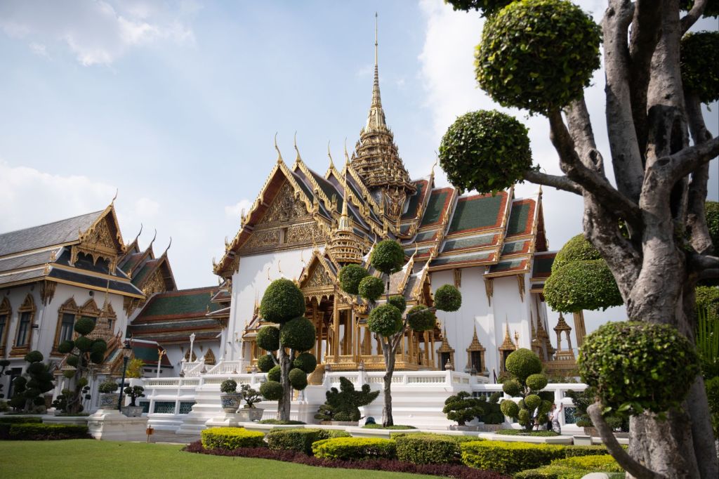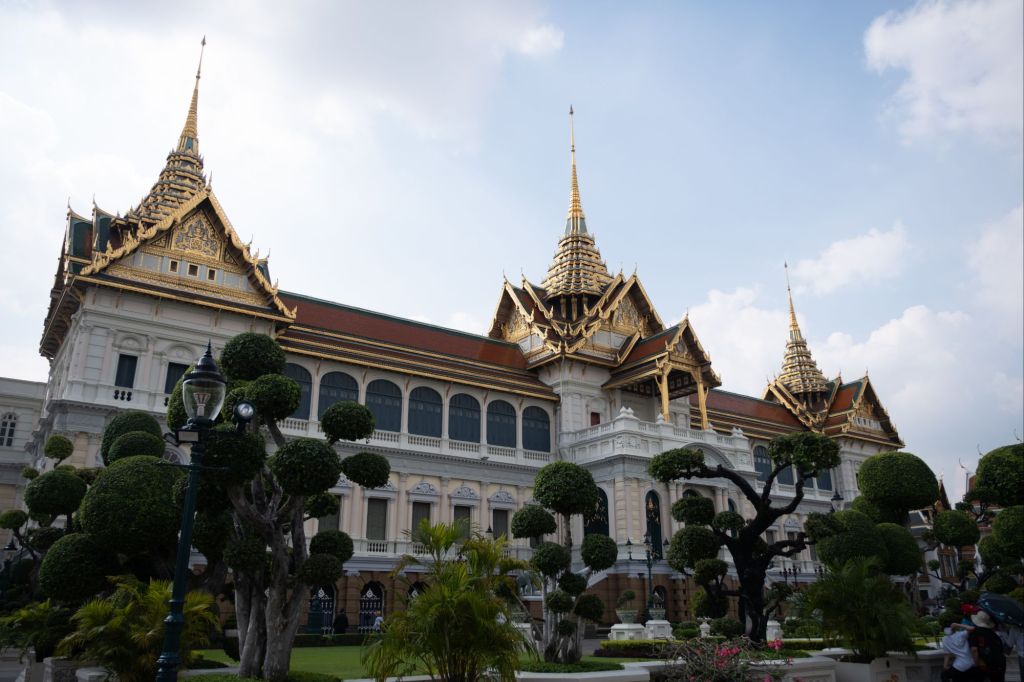 À partir de 5h du matin, les vendeurs ambulants commencent à défiler au milieux des couchettes en nous proposant de quoi nous sustenter. Nous réussissons à dormir, tant bien que mal, jusqu’à 7h, aux abords de Bangkok. Le chef de wagon nous fait nous dépêcher car nous sommes les derniers à dormir, et qu’il doit plier nos couchettes pour retransformer le wagon en un train à banquettes classique. Nous déposons nos affaires à l’auberge, où la gérante est une petite mamie adorable. Nous prenons une petite douche et partons à l’assaut du Grand Palais, que nous n’avions pas pu faire la dernière fois, faute d’une tenue décente ! C’est la demeure actuelle du roi de Thaïlande, il n’est donc pas visible en entier. Les quelques bâtiments que l’on peut voir de l’extérieur sont très joliment ouvragés, mais entre le monde et le prix du ticket d’entrée, je dois dire que ce ne fut pas un coup de cœur pour nous. Nous enchaînons avec le marché aux amulettes. Les thaïlandais sont très croyants et ils portent toujours sur eux, ou accrochée au rétroviseur de leur voiture, une petite amulette censée protéger du mauvais œil. Guillaume en a pris une « pour le futur 4×4 ».