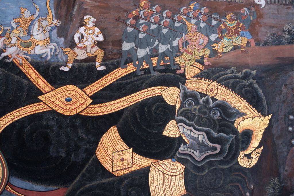 Puis nous prenons le bus pour nous rendre dans le quartier des malls, nous avons besoin de racheter une tête pour la tondeuse, qui s’est cassée. Ce fut un échec cuisant, nous savons maintenant que nous ne pourrons pas la racheter en Asie, et que nous allons devoir nous la faire ramener par nos prochains visiteurs. Nous nous promenons dans le mall aux allures de Samaritaine, avant de retourner dans la vieille ville. Les journées à Bangkok sont fatigantes, nous allons nous ressourcer en faisant notre dernier massage thaïlandais du séjour. Petite promenade du soir sur Khao San Road, historiquement la rue des backpackers, maintenant plutôt la rue des touristes. Il y a des stands de scorpions grillés, de viande de crocodile, des rabatteurs pour tous les bars et chacun met sa musique plus fort que le voisin. La cacophonie est peu agréable, nous fuyons rapidement. Nous dînons dans une petite ruelle calme un peu à l’écart. Demain, nous partons pour le 2ème pays de notre voyage, le Cambodge !