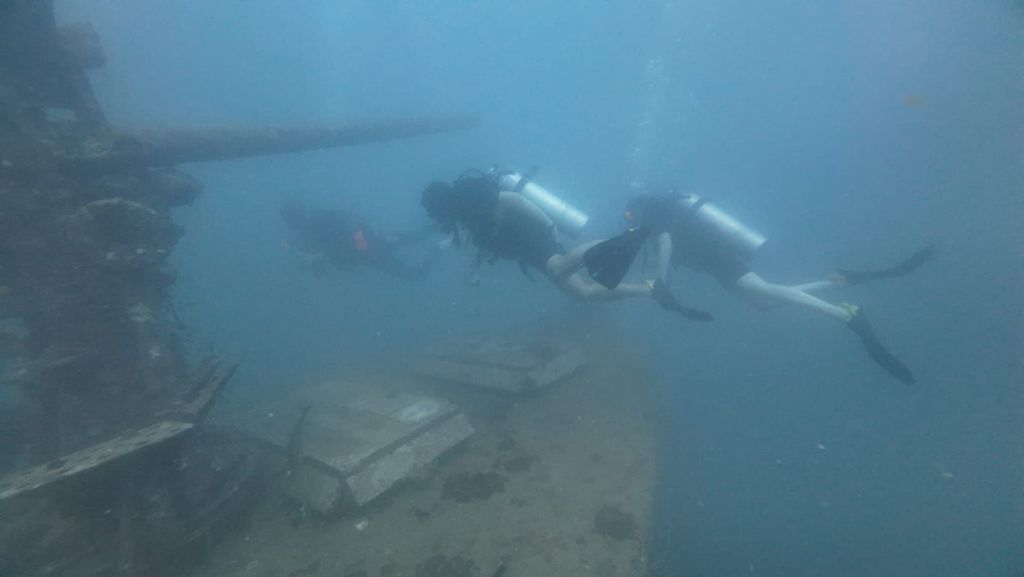 Dernier jour sur l’île et lever toujours aux aurores pour la deuxième journée de plongée. Nous laissons nos gros sacs au club et prenons le bateau. Maxime est toujours notre dive master aujourd’hui, et les deux plongées se passent très bien, malgré la visibilité très moyenne. Nous sommes allés sur une épave, avons traversé la cabine du capitaine et avons exploré les alentours. L’eau trouble lui donnait un air mystique.