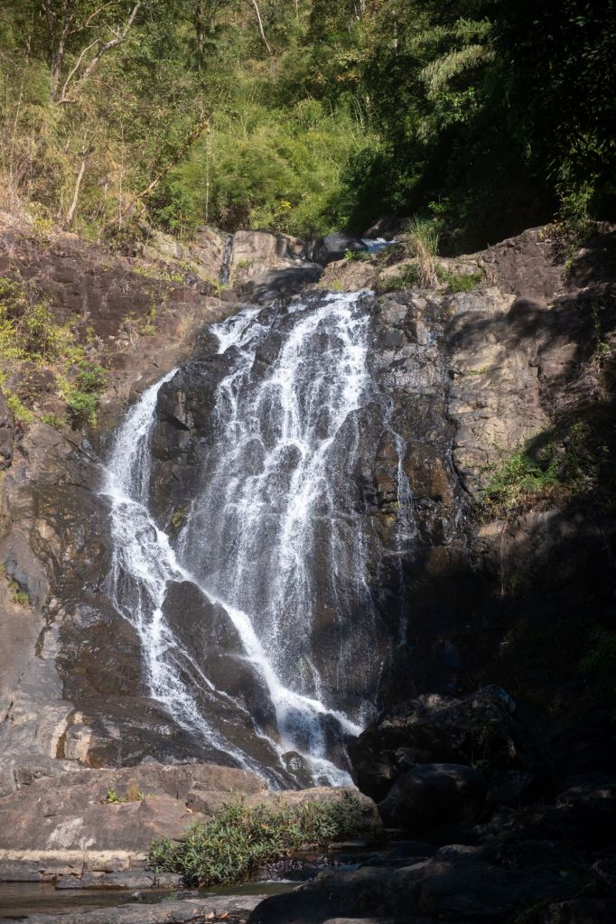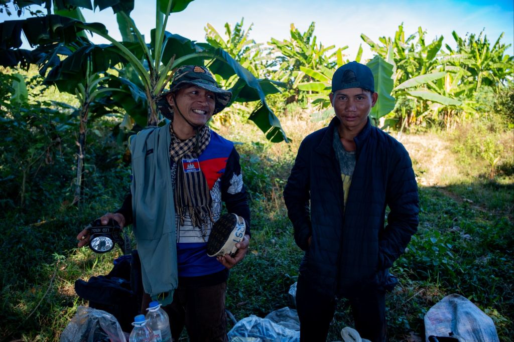 Nous sommes au pied d’une cascade dans laquelle nous nous sommes longuement baignés, puis nous prenons le traditionnel apéritif à la « happy water ». Le guide de l’autre groupe a fait l’aller-retour au village pour ramener des bières et plus de « happy water », ce qui nous a fait passer une excellente soirée à discuter avec nos guides. Nous nous rendons mieux compte du statut des minorités ethniques dont ils font partie, qui ont des particularités culturelles et religieuses différentes selon les ethnies. Ils nous ont raconté les difficultés qu’ils rencontrent encore aujourd’hui vis-à-vis des cambodgiens, et de la discrimination dont ils sont toujours victimes.