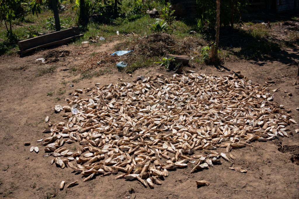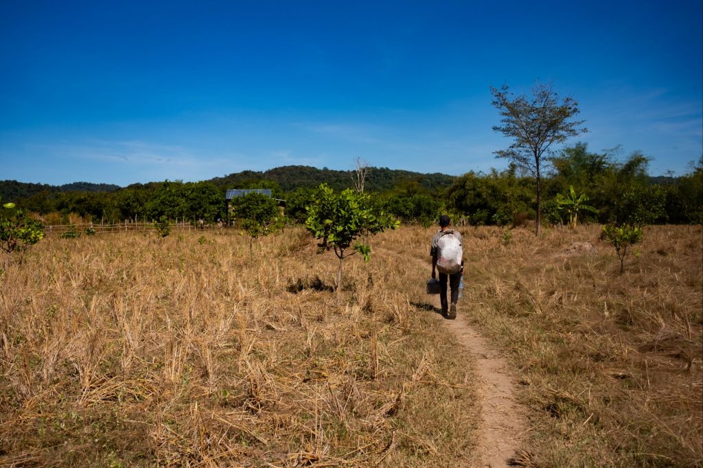 Nous retrouvons le chemin de l’aller au milieu des champs secs de riz et de manioc, et marchons au soleil jusqu’à notre bateau. Nous déjeunons au bord de l’eau pour la dernière fois avec nos guides (ils ont eu le temps de tout cuisiner pendant que nous faisions la grasse matinée…).