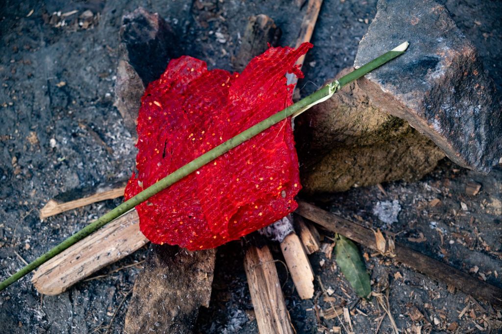 Notre guide nous montre des arbres qui produisent de l’huile quand on fait brûler leur tronc, et qui sert par exemple de cire à bougie. Il nous fait aussi goûter des fourmis rouges, qui ont un petit goût acide pas désagréable, dû à l’acide formique qu’elles contiennent.