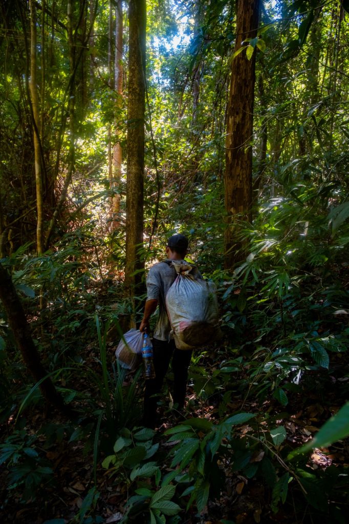 Dernier jour de jungle, nous nous réveillons très tard avec Guillaume, les guides n’ont pas osé nous réveiller, nous partons donc aux heures déjà chaudes. Le chemin est un peu plus vallonné cette fois-ci, mais les sacs sont allégés de la nourriture. Nous grimpons au sommet d’un petite colline d’où il y a une jolie vue sur la rivière et où Guillaume a pu faire voler le drone.