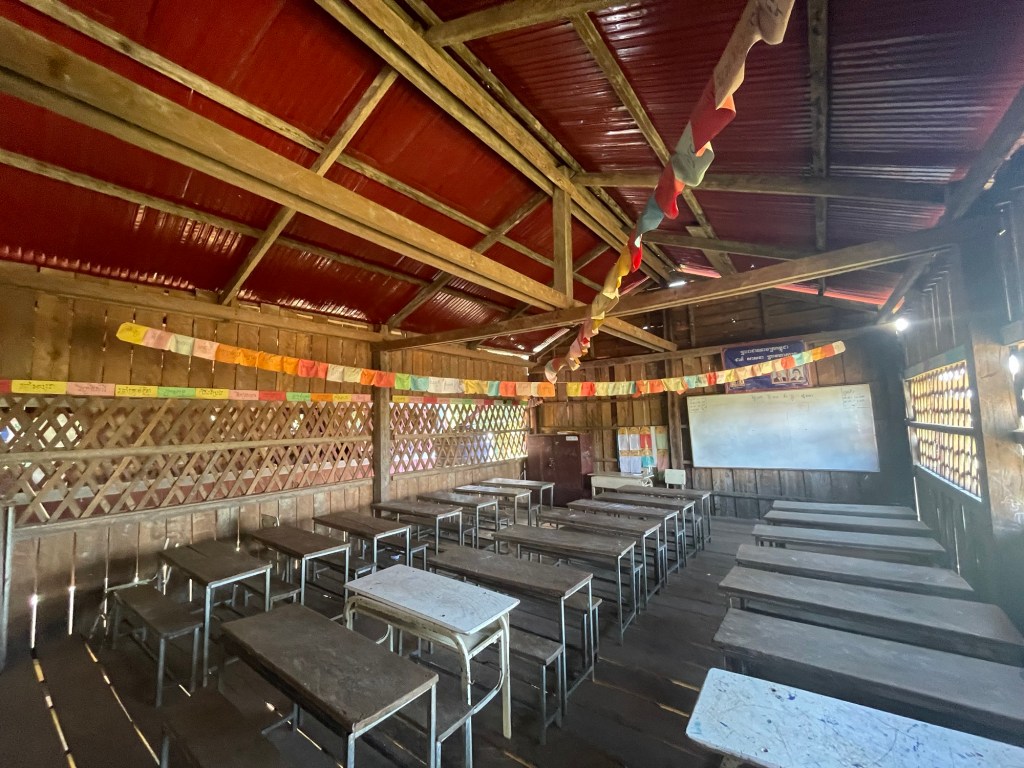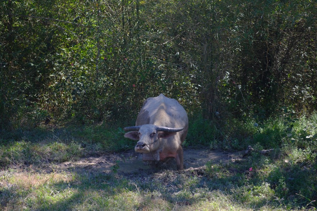 Puis nous prenons le bateau qui nous conduit au village de Teng. Pat et Teng font partie chacun d’une minorité différente. Nous visitons un village tout à fait typique, où toutes les maisons sont construites sur pilotis pour pouvoir profiter de l’ombre. Les buffles paissent dans le jardin de l’école. Nous allons même visiter le cimetière, où les tombes sont éparpillées dans la forêt, et autour de chacune est construite une petite maison où les affaires du défunt sont stockées.