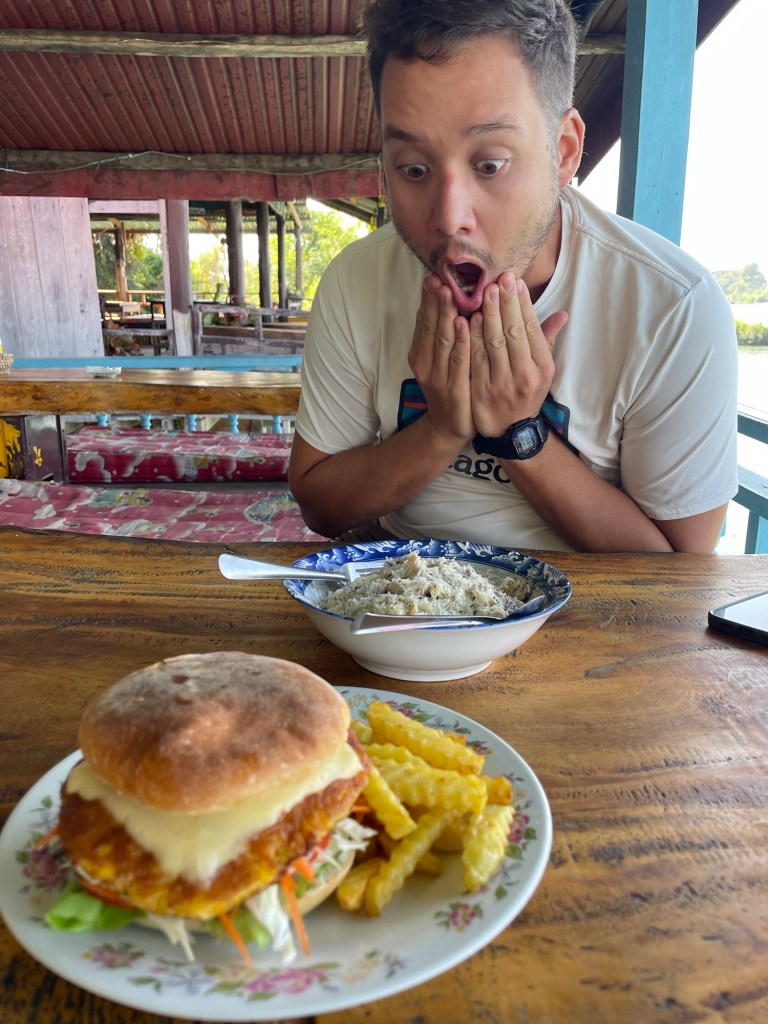 Le menu de l’hôtel, tenu par un français, nous donne très envie. Nous dînons d’un rösti au fromage à raclette ainsi que d’un burger au bleu, accompagnés d’une Chouffe (un plaisir de changer de la Beerlao, qui n’est vraiment pas terrible).