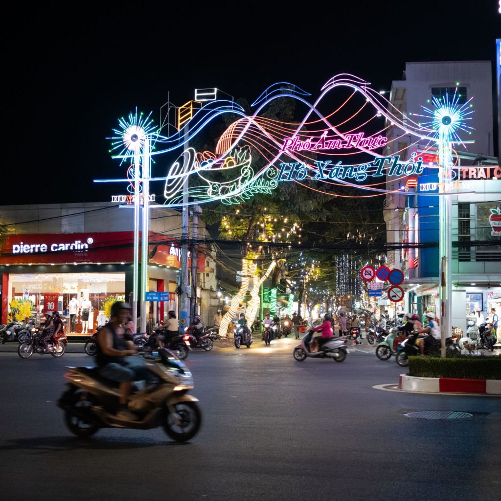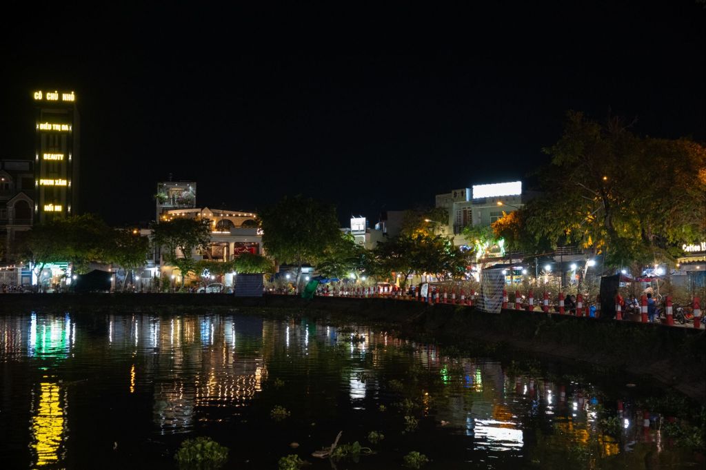 Nous remontons vers le nord, passons aux pieds de la statue d’Ho Chi Minh qui surplombe la rivière, et passons visiter le temple Chua Ong et le fameux pont piéton de la ville. Sur le chemin, une petite mamie tente de nous forcer à acheter des billets pour aller faire le marché flottant demain à 5h du matin. Grâce à une subtile technique de dispersion (nous sommes tous partis dans des sens différents), on arrive finalement à semer cette grand mère tenace. D’après la plupart des gens, il n’y a plus rien d’authentique et il y a plus de touristes que de marchands, nous décidons donc de passer cette étape. Depuis la construction de nombreux ponts et de marchés couverts, les marchés flottants sont de moins en moins utilisés par les locaux, il persiste seulement quelques bateaux pour les touristes…
