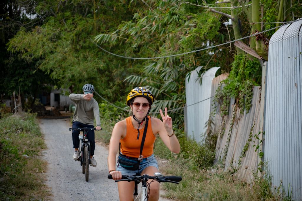 Puis nous vient l’idée de louer des vélos afin de s’éloigner un peu plus de la ville. Nous nous en mordons rapidement les doigts : la circulation est dense, tout le monde klaxonne, nous nous sentons vraiment très petits sur nos VTT, et la sortie de la ville est difficile. Après s’être un peu perdus en tentant une route alternative plus petite, nous arrivons enfin au but de la visite : la maison Binh Thuy. C’est une ancienne jolie maison sur laquelle nous n’avons pas trop d’information. La maison est très jolie, mais la visite est vraiment rapide, et ne valait peut être pas tout ces efforts…