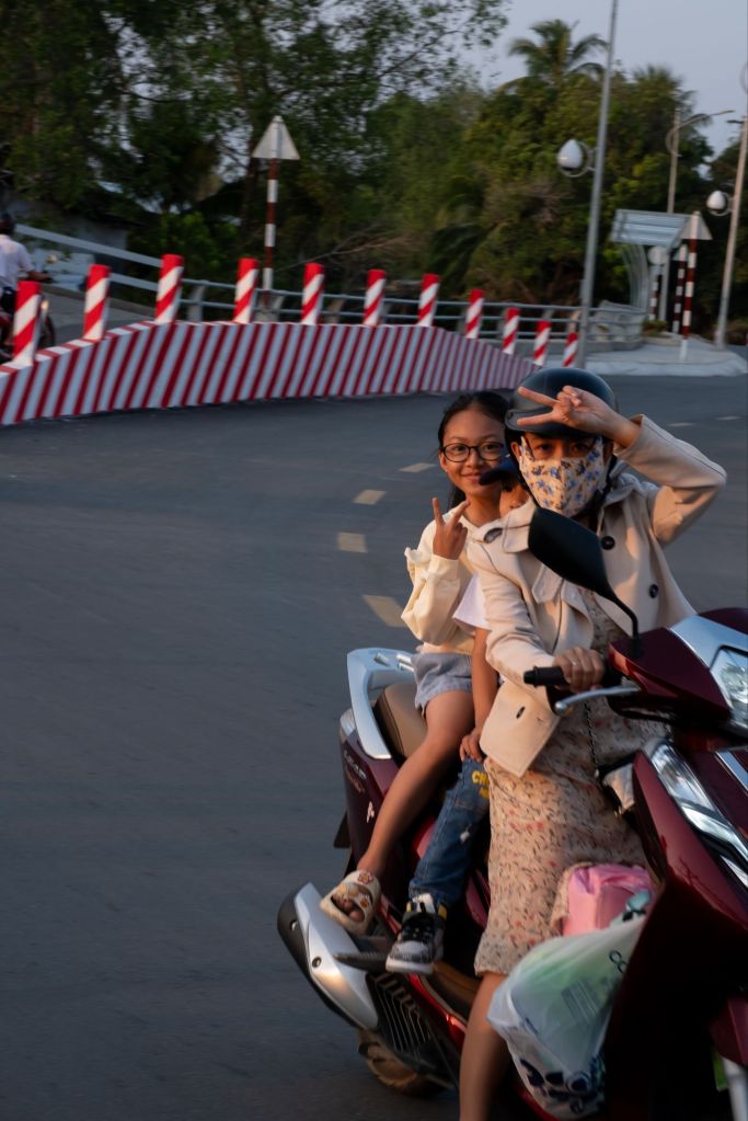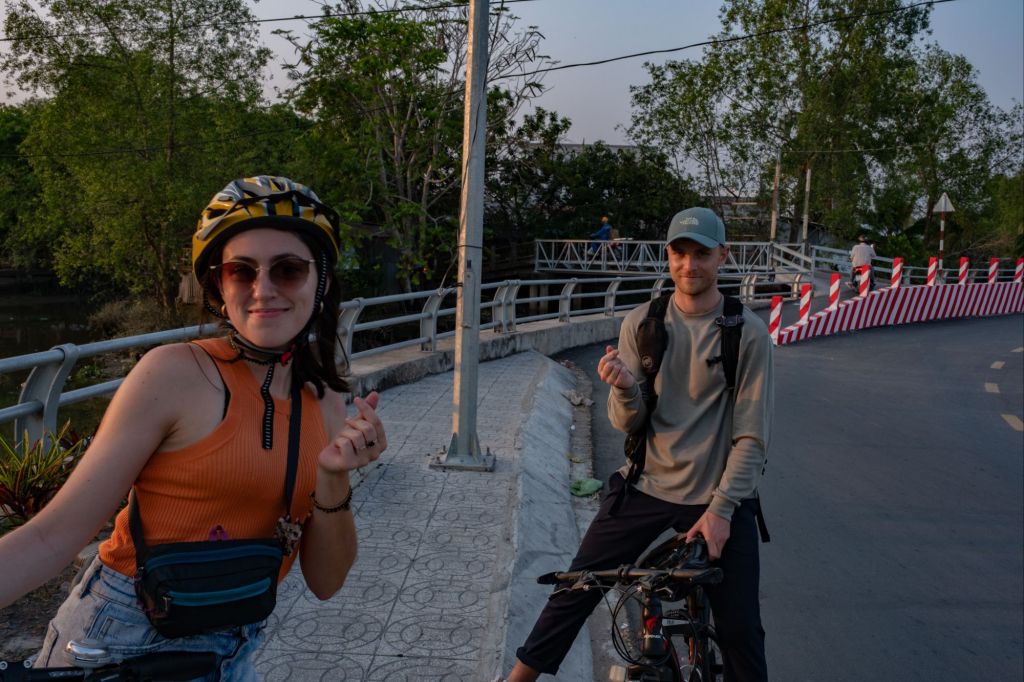 Nous poursuivons notre chemin vers l’ouest en direction du village de Long Thuyen, et cette fois nous sommes sur des petites routes très mignonnes entre la mangrove et les villages, c’est calme et reposant.