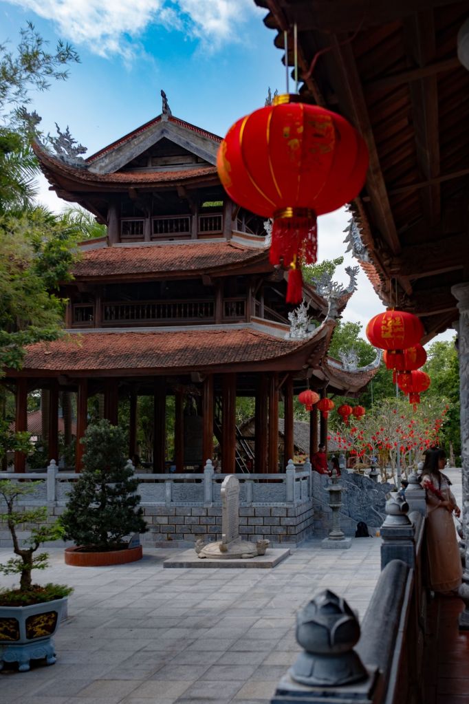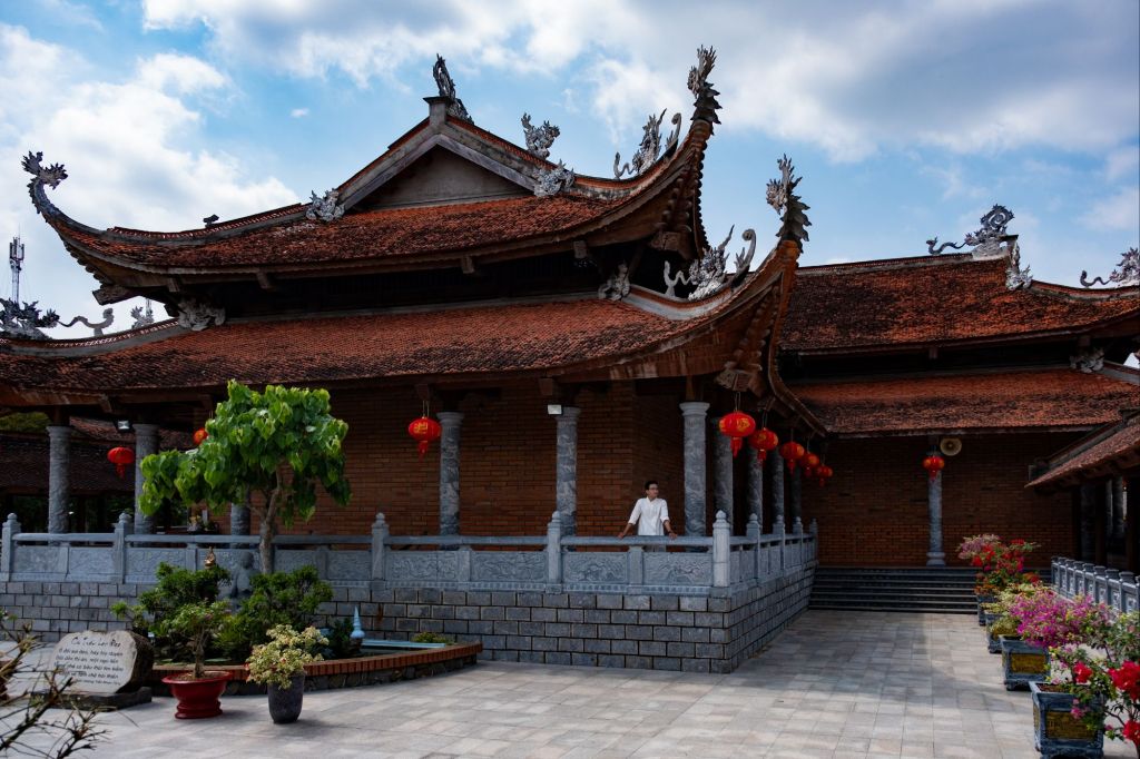 Nous allons ensuite visiter le monastère Truc Lam Phuong Nam. Il est magnifique, avec sa grande cour entourée de temples d’inspiration chinoise. Il y a beaucoup de vietnamiens en tenues traditionnelles qui se prennent en photo ici, c’est vrai que le cadre s’y prête bien.
