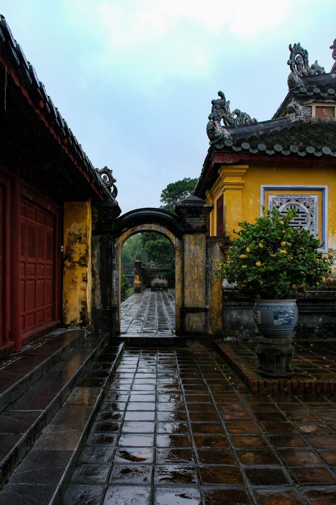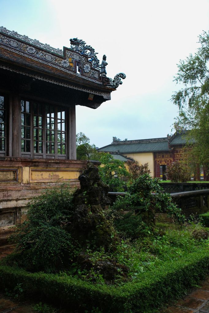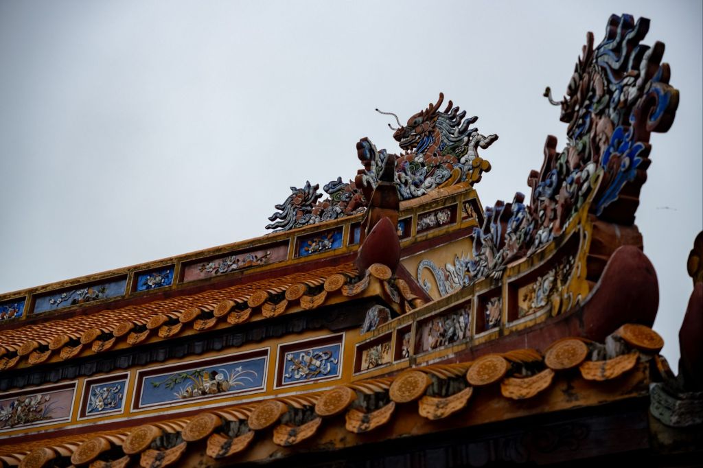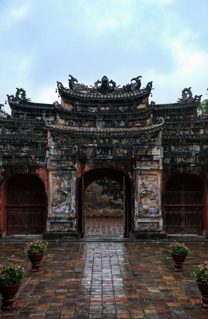 Nous avons donc tout l’après-midi pour profiter de la citadelle. Hué fut la capitale impériale du Vietnam de 1802 à 1945. La citadelle Kinh Thanh est l’enceinte la plus extérieure, servant à abriter les bâtiments administratifs. À l’intérieur, la cité impériale Hoang Thanh héberge les palais royaux et lieux de pèlerinage. Enfin, la cité pourpre interdite Tu Cam Thanh abritait les résidences royales. Cette dernière a presque entièrement été détruite au cours des différentes guerres.