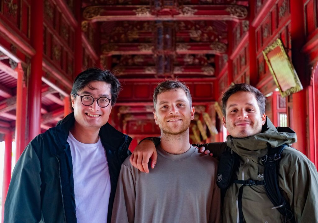 Sur le chemin, nous nous arrêtons boire un café au Hiên Ca Phê. Guillaume goûte le café salé, et c’est étonnamment délicieux ! C’est un café chaud avec du lait concentré sucré au fond, et une crème salée sur le dessus.