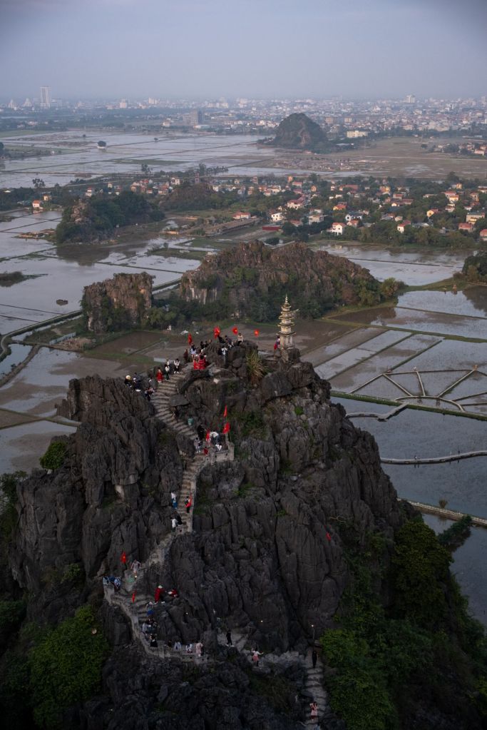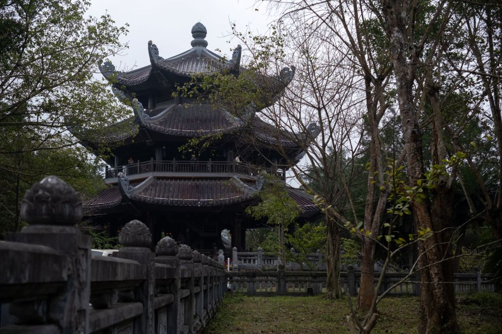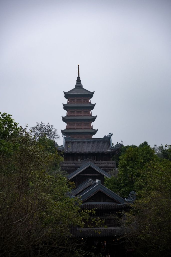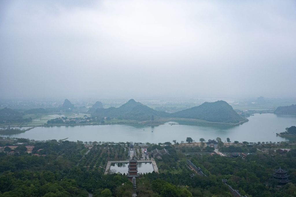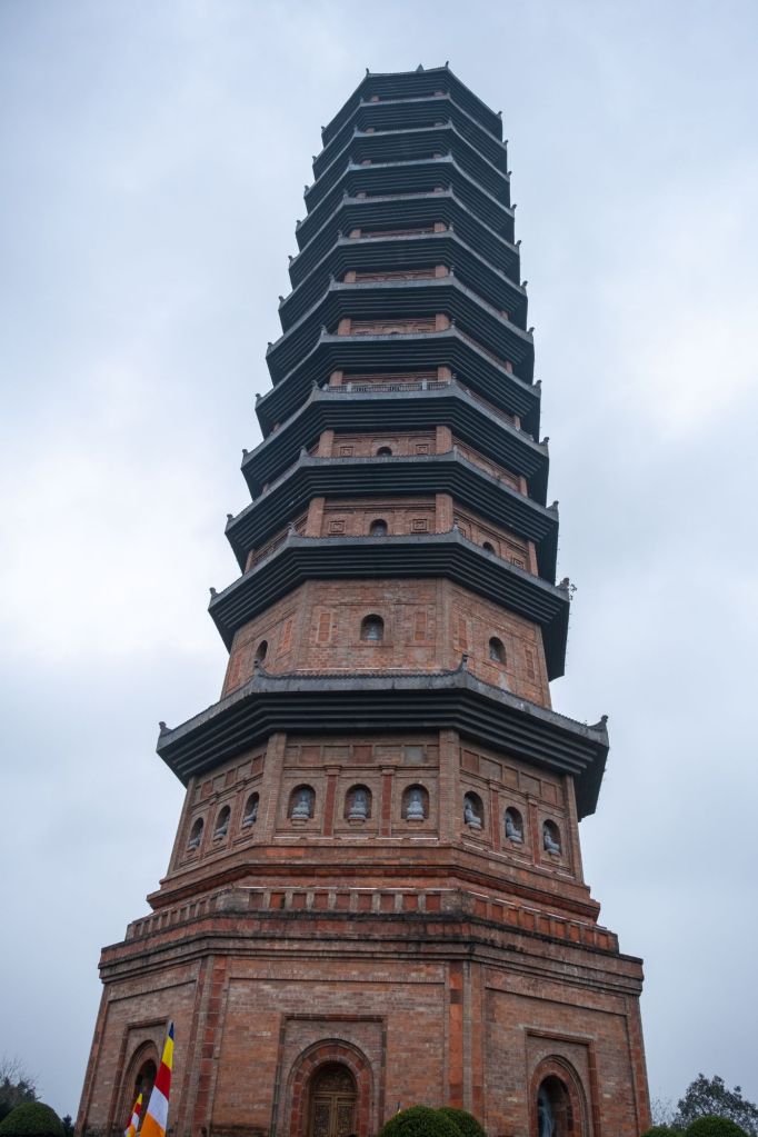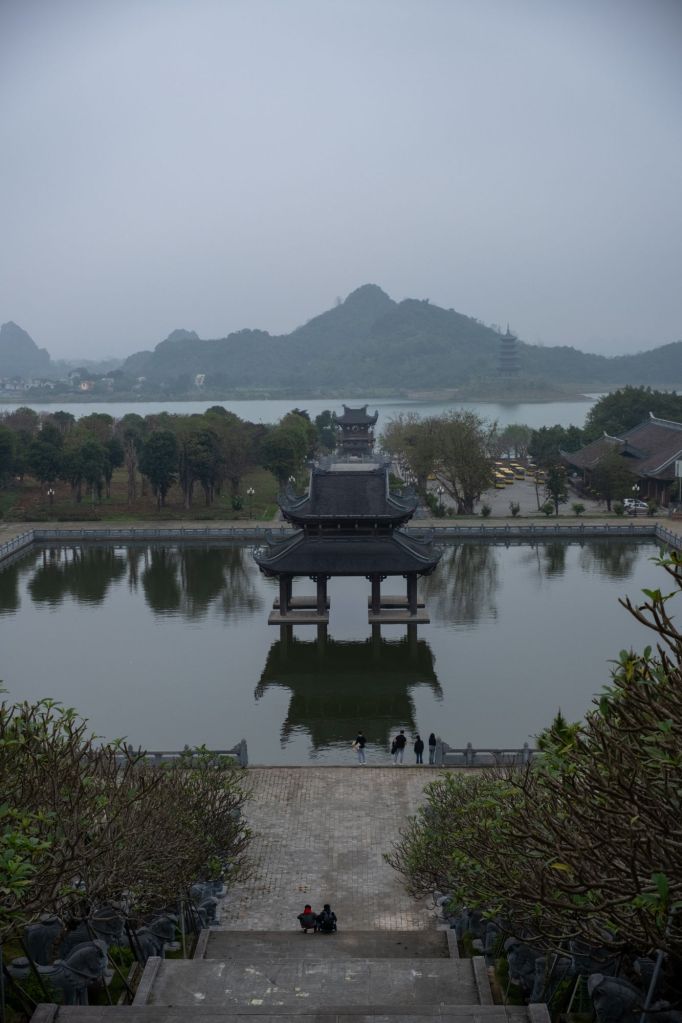 L’endroit est un des plus grands sites religieux du Vietnam, et beaucoup de vietnamiens viennent y prier pour la nouvelle année. Nous grimpons au sommet d’un grand stupa de 12 étages, d’où nous avons une très belle vue sur tout le site et le lac qu’il borde.
