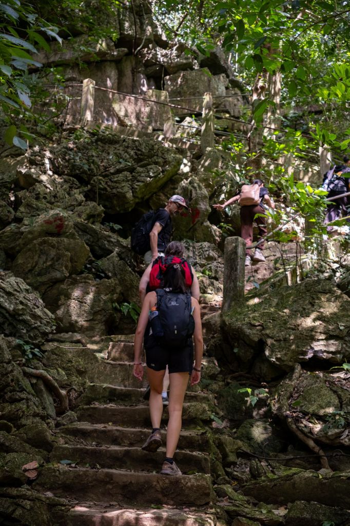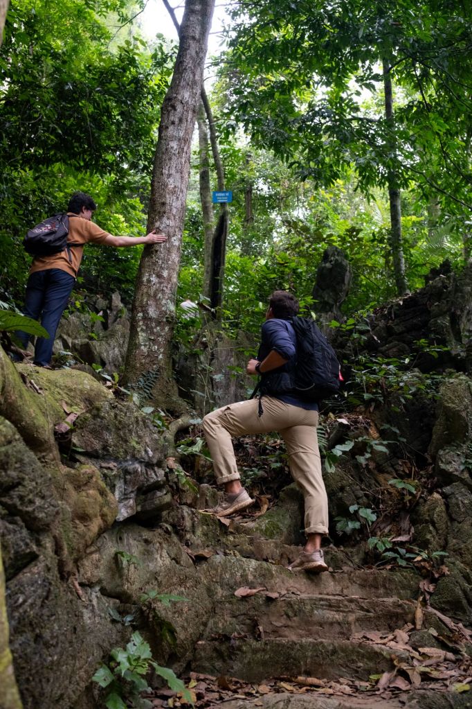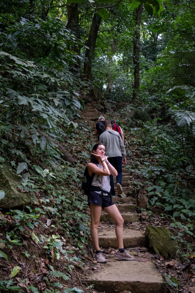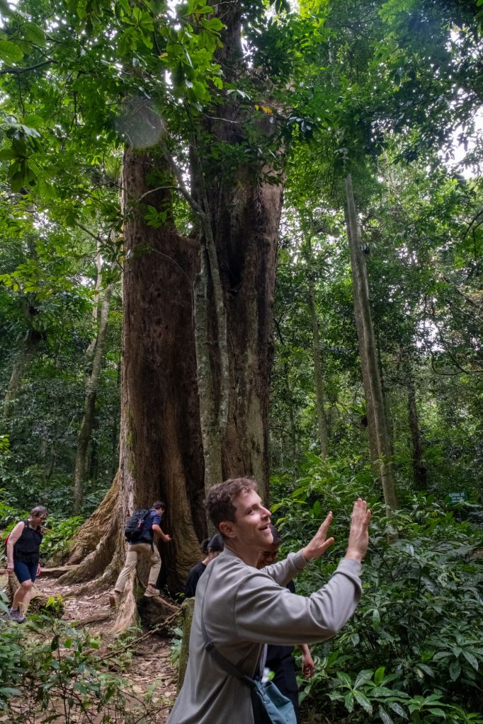 Ce matin, après notre habituel énorme petit déjeuner, nous partons tous les 6 (Clément et Paul nous ont de nouveau rejoint) en direction du parc Cuc Phuong. Nous avons loué un chauffeur pour la journée, et nous arrivons au départ de la randonnée après presque 2h de route. Nous partons sur un court sentier d’environ 7km au milieu de la forêt.