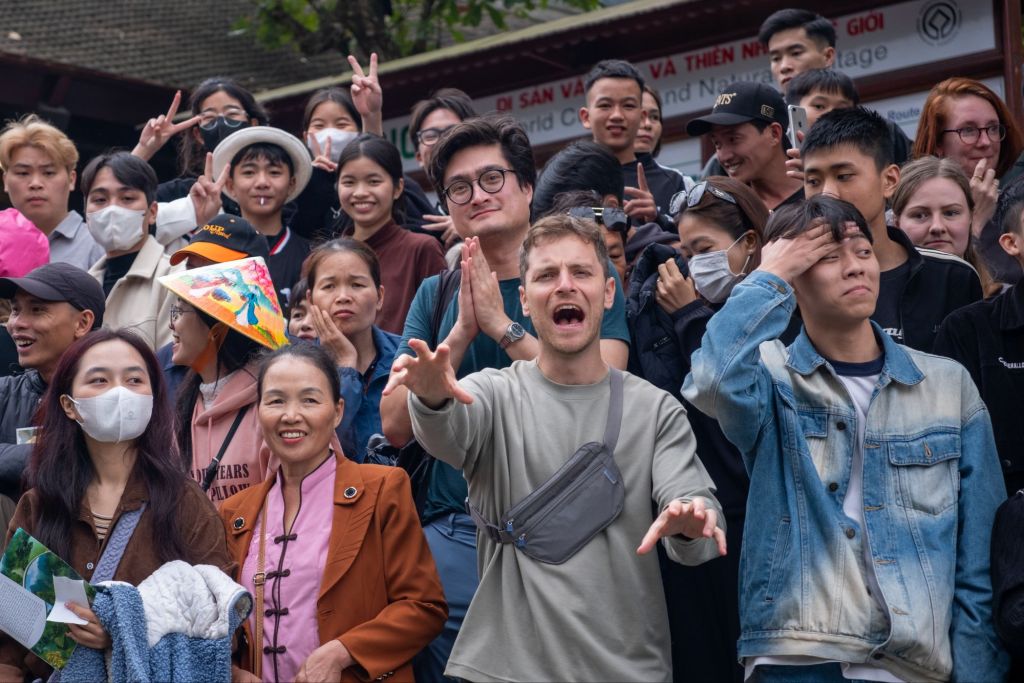 Puis nous prenons un taxi pour aller à la Mua Cave. Il y a un grand point de vue très prisé des vietnamiens. La vue est magnifique, mais il y a énormément de monde qui se prend en photo en tenues traditionnelles. Nous prenons quelques magnifiques photos, l’endroit et les Vietnamiens s’y prêtent très bien. Après le bain de foule, nous sommes contents de rentrer !