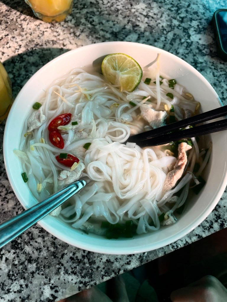 Nous profitons de notre grande chambre pour faire une petite séance de sport avant d’aller manger au Gia Bo restaurant. Nous goûtons au bun cha ninh binh et au bun cha hanoi, sans voir la réelle différence, mais cela reste un de nos plats vietnamiens préférés.