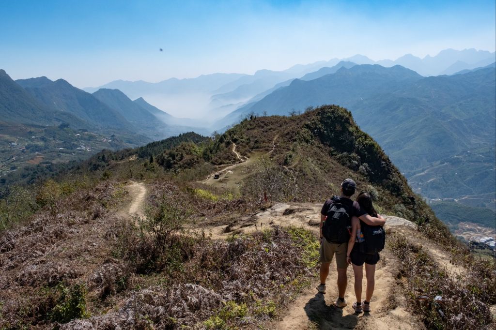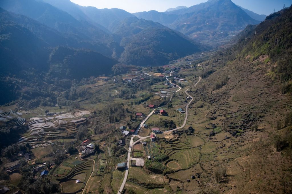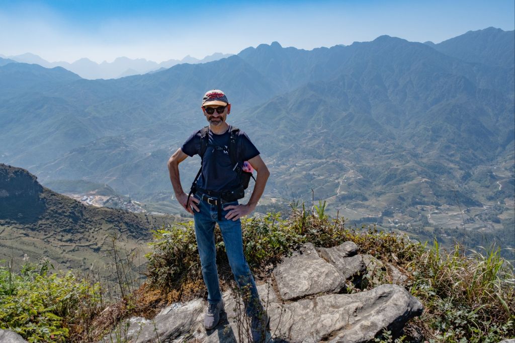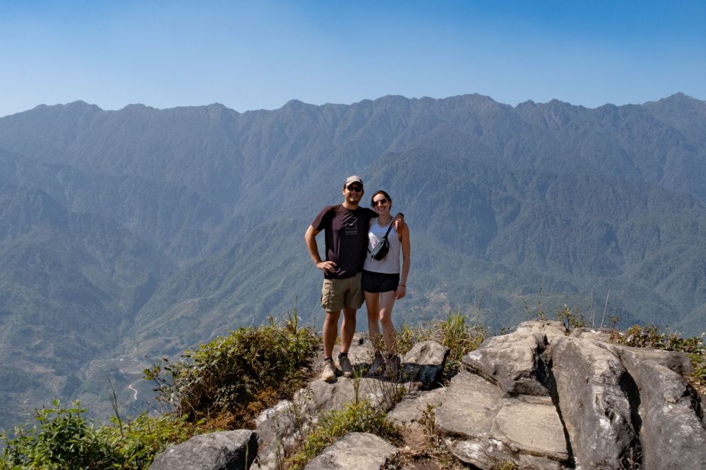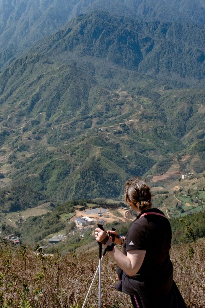 Nous débutons tranquillement la montée, et la vue sur Sapa se dévoile petit à petit. Au sommet, nous allons faire quelques photos à un point de vue magnifique où l’on voit la vallée et les rizières en terrasse.