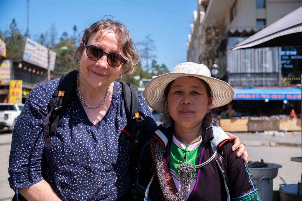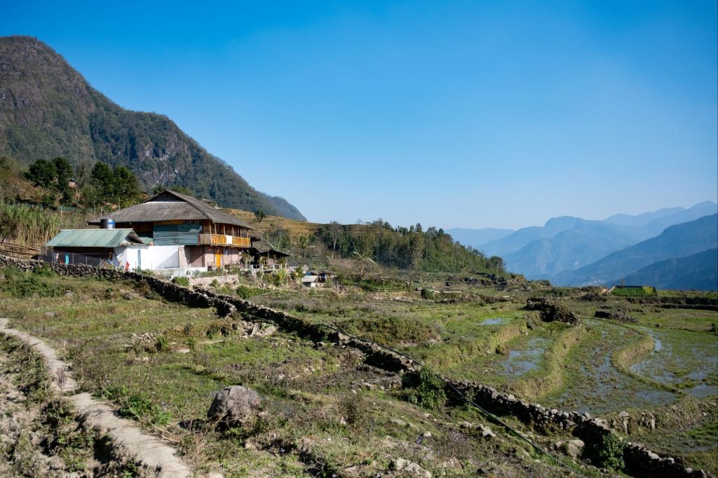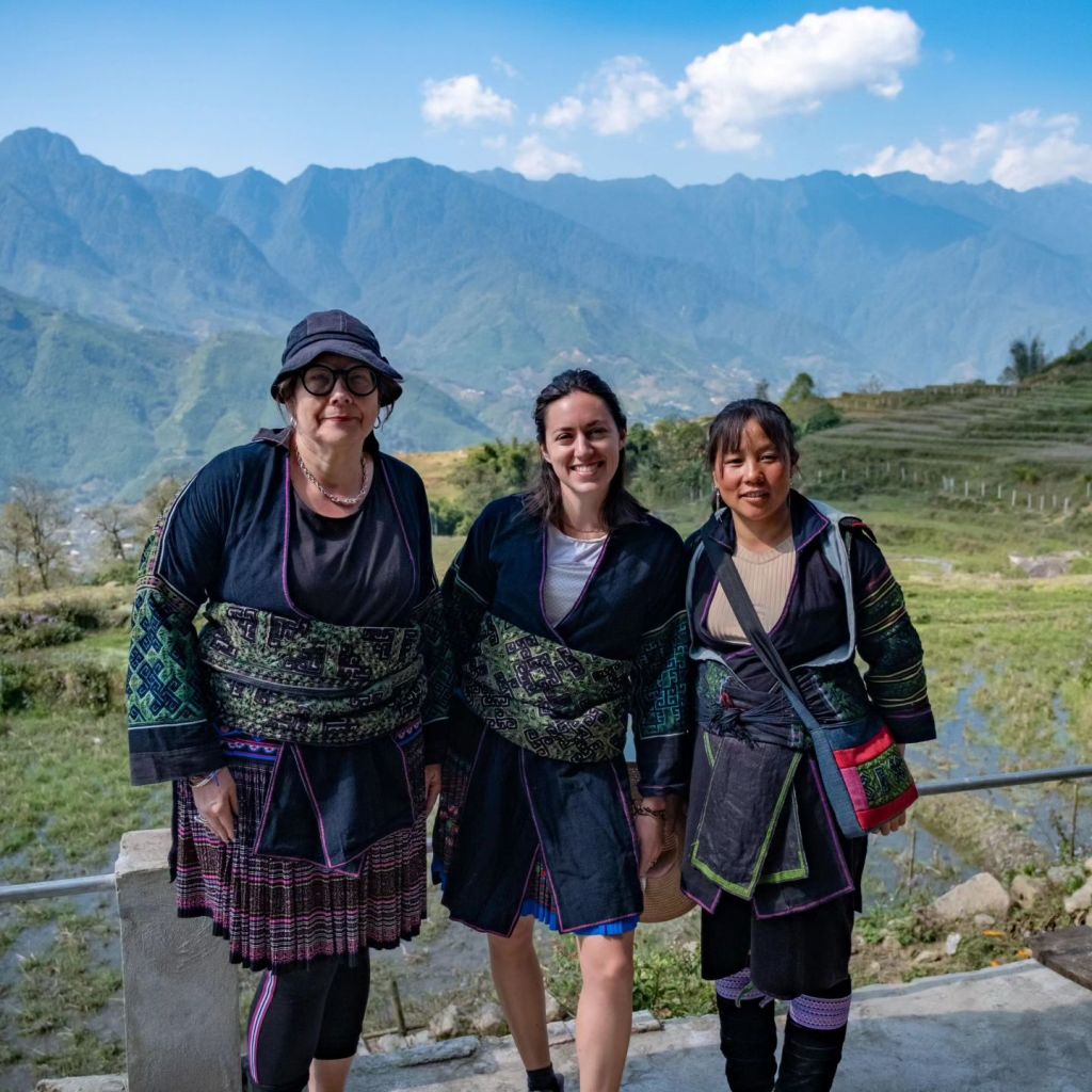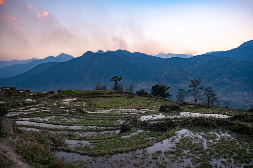 Nous débutons tranquillement la montée, et la vue sur Sapa se dévoile petit à petit. Au sommet, nous allons faire quelques photos à un point de vue magnifique où l’on voit la vallée et les rizières en terrasse.