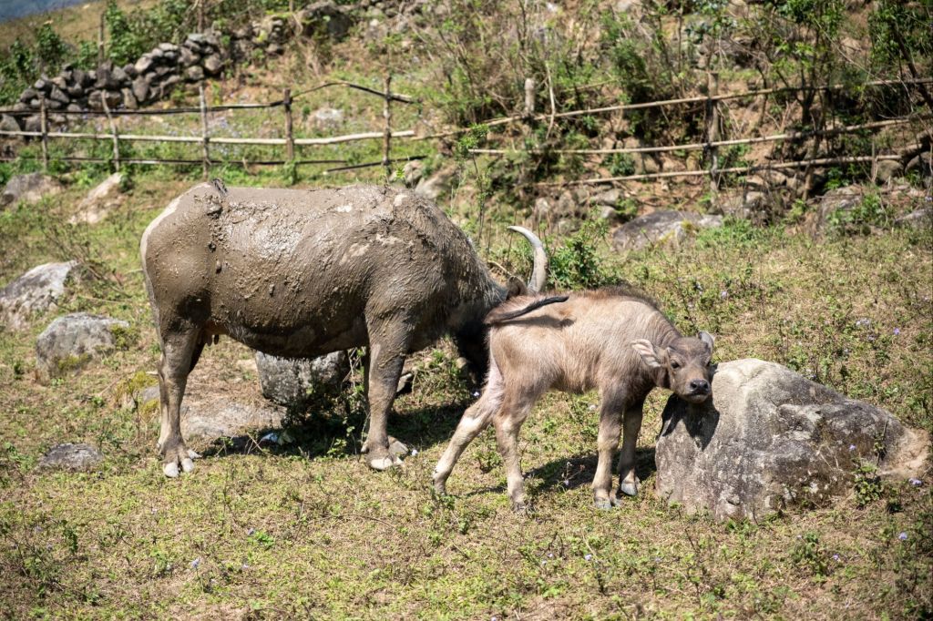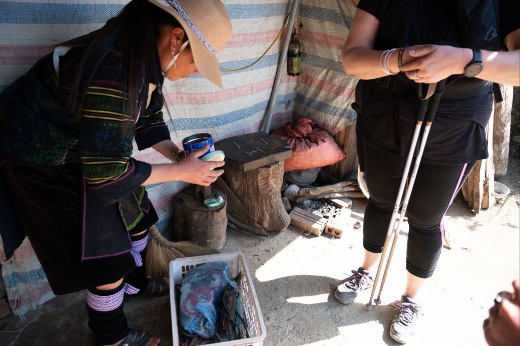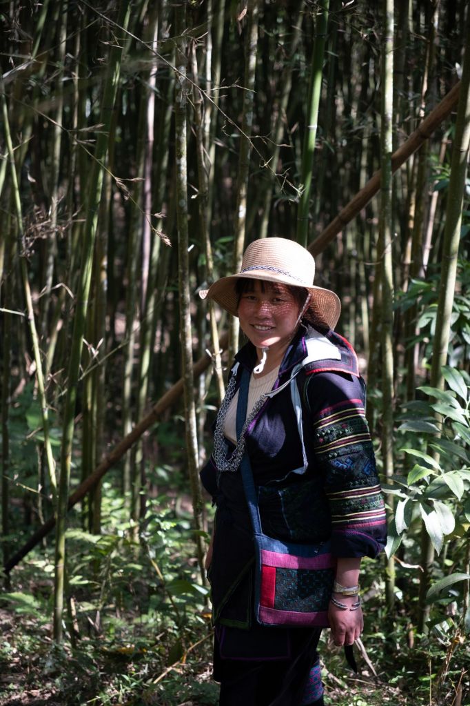 Nous avons contacté Mama Mu, qui avait accueilli Christophe et Amélie et qui nous l’ont chaudement recommandée. Mama Mu fait partie de l’ethnie des Hmong et habite un petit village dans les montagnes au-dessus de Sapa. Elle est venue nous chercher à l’hôtel, et nous allons rejoindre son village à pieds. Nous passons par le marché, où elle achète des clémentines et nous prenons du sticky rice cuit dans du bambou.