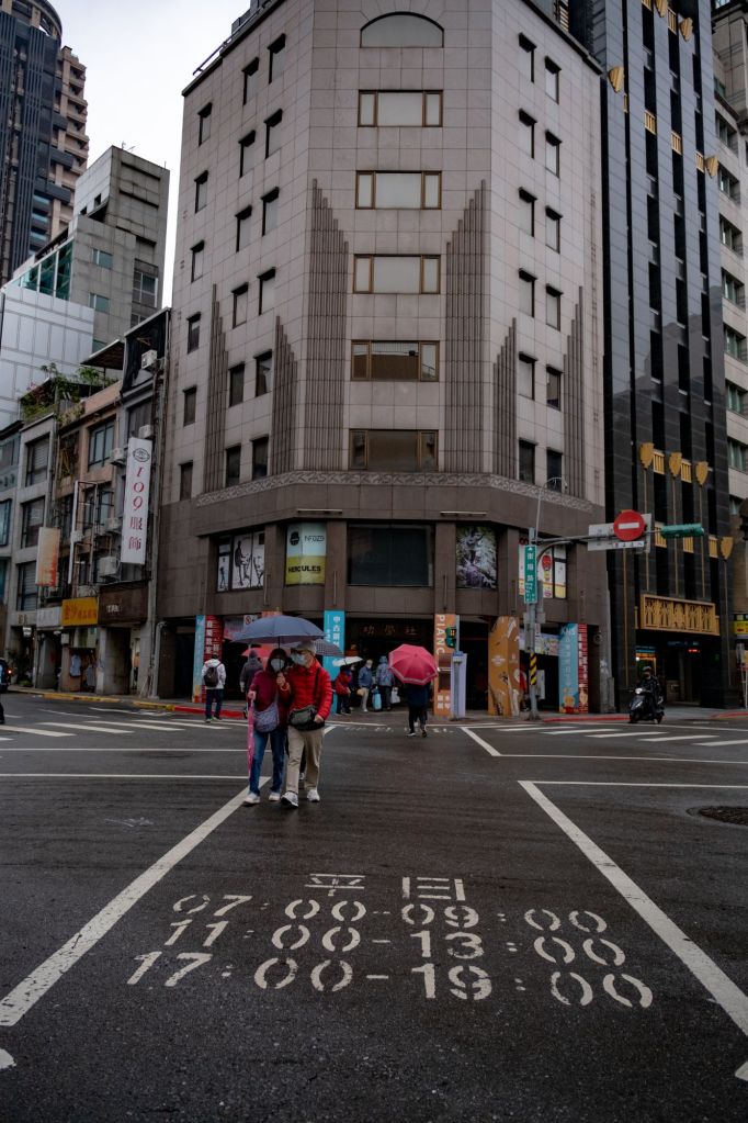 Après une courte nuit, nous nous rendons à l’aéroport de Xiamen. Tous les contrôles sont longs, mais après 5 minutes d’inspection de mon passeport, je passe tranquillement mais je ne vois pas Guillaume arriver. En effet il est bloqué avec un douanier chinois qui examine en long, en large et en travers son passeport sans poser de question. Finalement, au bout de 10 minutes et avec une moue perplexe, il le laisse tout de même passer. Il nous reste encore à passer la sécurité ou nous faisons confisquer tous nos anti-moustiques (car il y a une icône flamme dessus). Nous avons enfin le droit d’embarquer direction Taipei. Après un court trajet dans le magnifique métro aérien taïwanais, nous déposons nos affaires dans notre hôtel, le New Lion City Hotel (ou 新獅城商務旅店 pour les intimes).