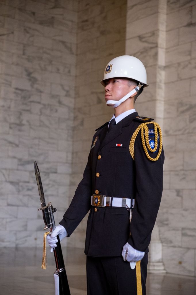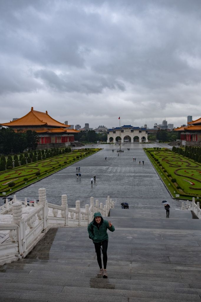 Nous prenons le bus, sous la pluie, pour aller visiter le Mémorial de Tchang Kaï-Chek. Il s’agit d’une grande esplanade par laquelle on rentre en passant sous une imposante arche, avec les bâtiments de l’opéra et du théâtre de part et d’autre, et le mémorial au fond. Nous avons même eu la chance d’assister à la relève de la garde, toute en chorégraphie !