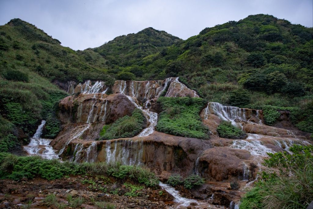 Ce matin, le temps est encore très couvert et n’annonce rien de bon. Nous passons près de la golden waterfall, une cascade dont les pierres et l’eau ont une jolie couleur dorée, due à la grande concentration en minéraux (arsenic et cuivre notamment) de l’eau. Plus bas, lors de sa rencontre avec la mer, elle forme la Yin-yang sea, un joli mélange de doré et de bleu.