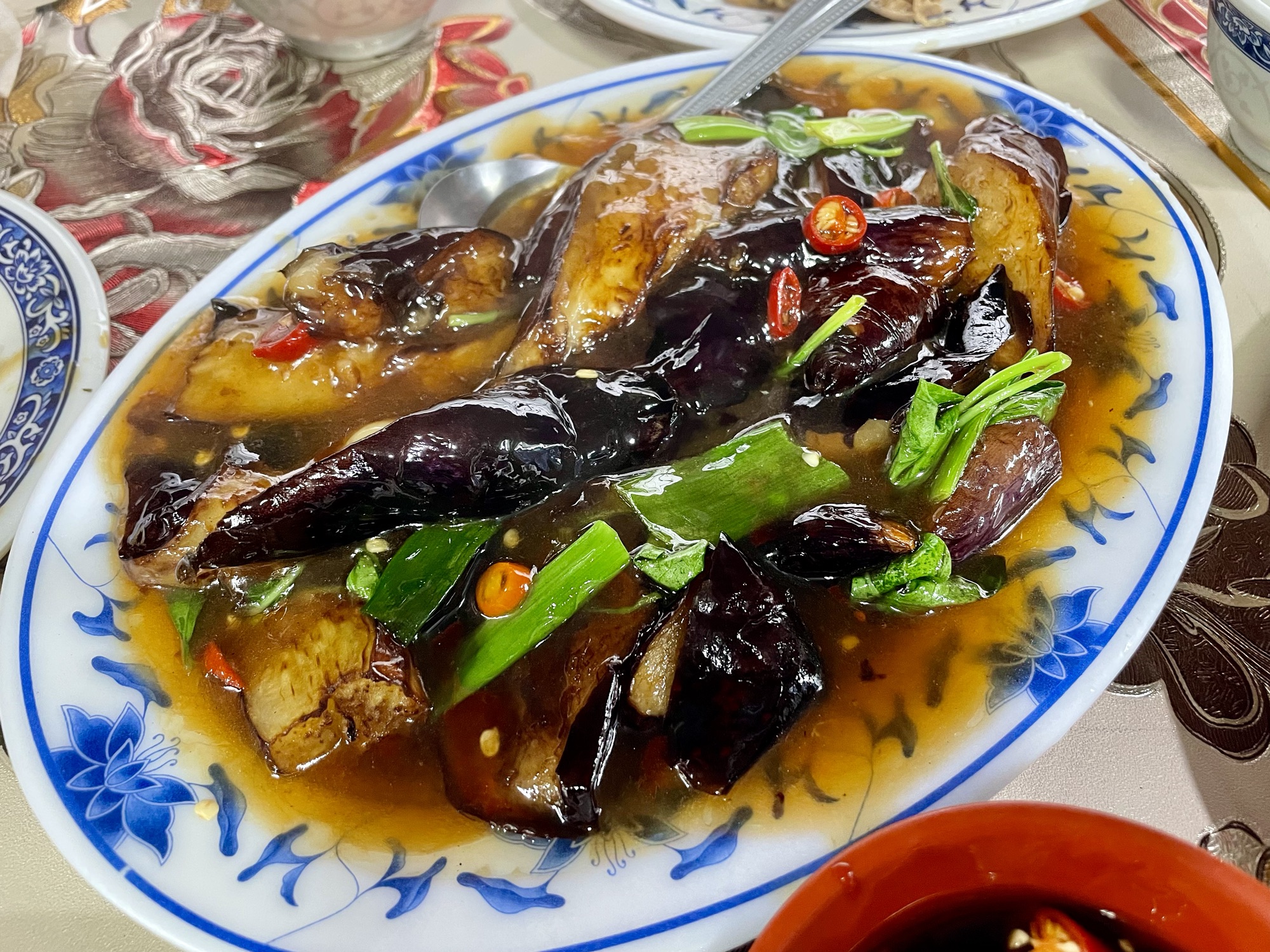 Heureusement, une taïwanaise de la table d’à côté est venue nous aider à commander ! Nous avons pris du poulet cuit à la vapeur, des nouilles aux légumes, et de délicieuses aubergines fondantes.
