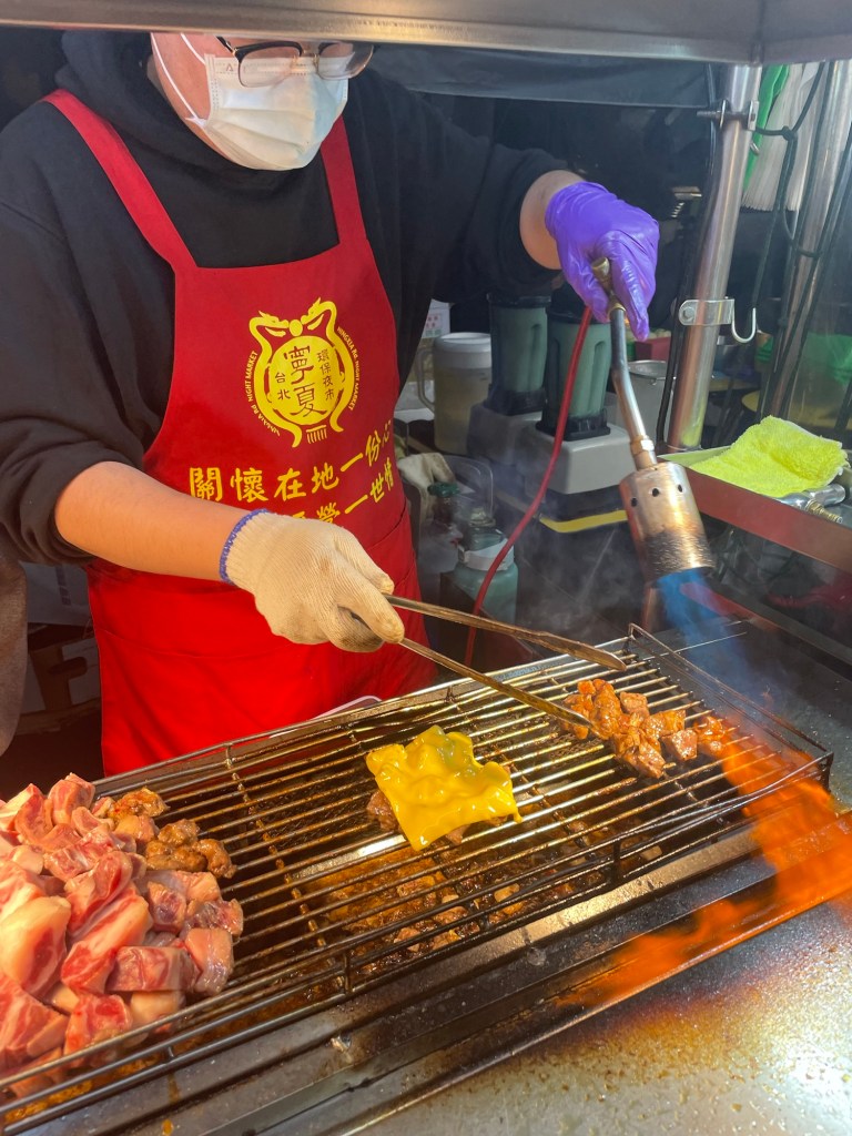 Ce soir, nous retournons manger à notre marché de street food (Ningxia night market), et c’est toujours aussi délicieux. Nous essayons des sortes de gyozas, du steak de bœuf grillé à la flamme et terminé au chalumeau (avec du fromage fondu dessus), et des petites boules de pomme de terre saupoudrées de chocolat en poudre. Nous nous sommes encore une fois régalés !