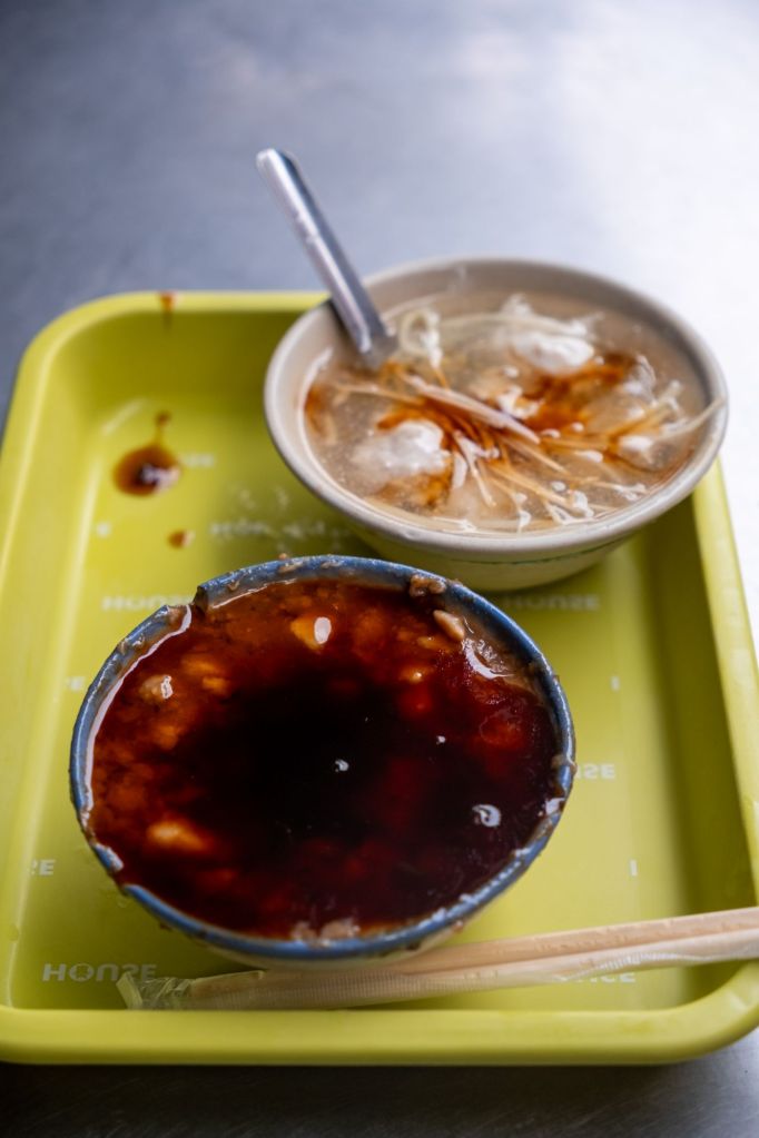 Yi Wei Pin 台南一味品碗粿魚羹 (Tainan) : pudding de riz au porc, récompensé d’un Bib gourmand. C’est original mais nous n’avons pas adoré le goût.