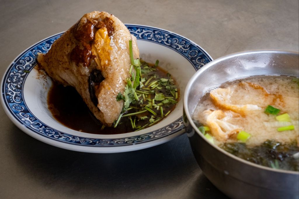 Pour ce matin, nous allons tester des spécialités locales dans des petits boui-boui dans la rue. Nous commençons par une beef soup, recommandée par le guide Michelin, qui est bonne mais ne nous transcende pas plus que ça. Le petit magasin d’en face nous intrigue, et nous prenons une sorte de pâté de riz gluant fourré au porc (cela ressemble un peu au Banh têt vietnamien), cette fois on se régale, sous l’œil amusé d’un petit papi taïwanais.