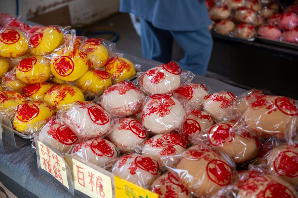 Ce matin, nous nous dirigeons vers Xinmei Street, où il y a de nombreux stands de nourriture de rue. Nous commençons par goûter une sorte de gâteau de riz au porc (chez Tainan Yi Wei Pin 台南一味品碗粿魚羹, récompensé d’un Bib gourmand), puis une galette de riz au poulet et aux légumes qui est sucré. C’est original mais trop sucré à notre goût