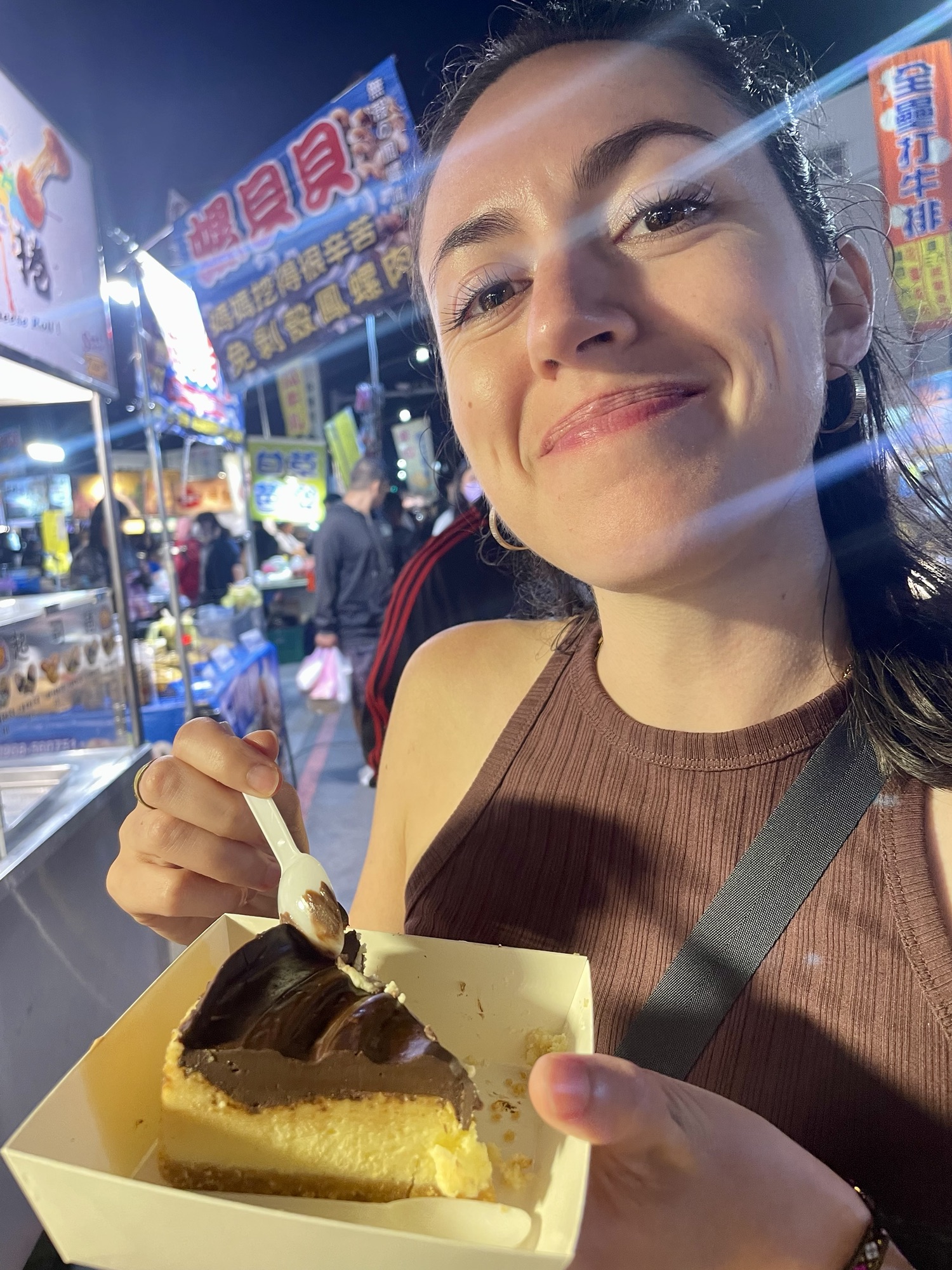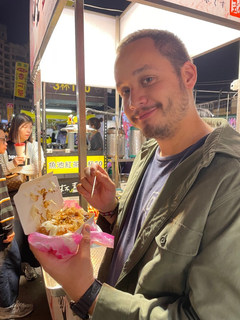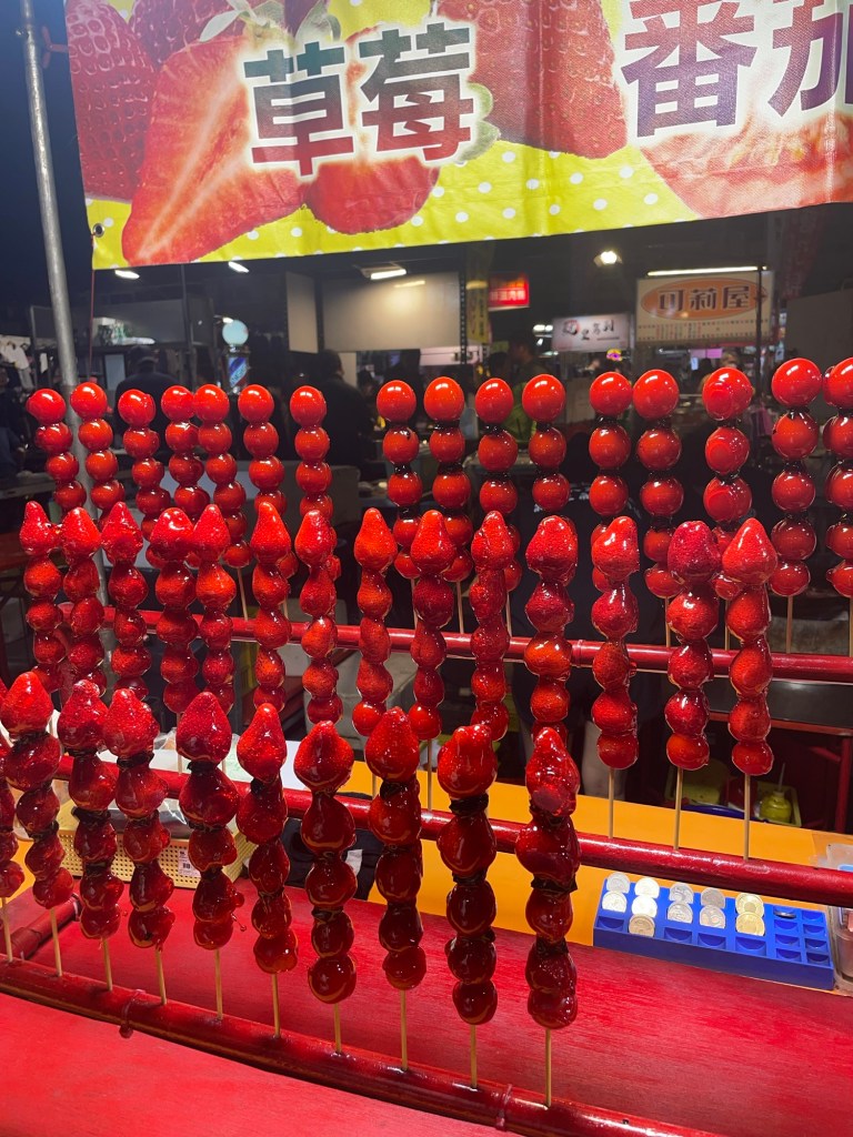 Nous arrivons dans la soirée à Tainan. Après avoir garé la voiture et avoir eu bien du mal à trouver notre hôtel (河樂悠遊HOLAYOYO), nous prenons une douche bien méritée. Ce soir, nous allons manger au marché de nuit de Wusheng. C’est une sorte de grande fête foraine avec de nombreux jeux (tir à la carabine, lancer de cerceaux, mah-jong…), et des stands de nourriture. Nous prenons des takoyakis, du poulet grillé, une sorte de petit burger feuilleté délicieux, un cheesecake au chocolat et des fraises trempées dans du sirop de sucre.