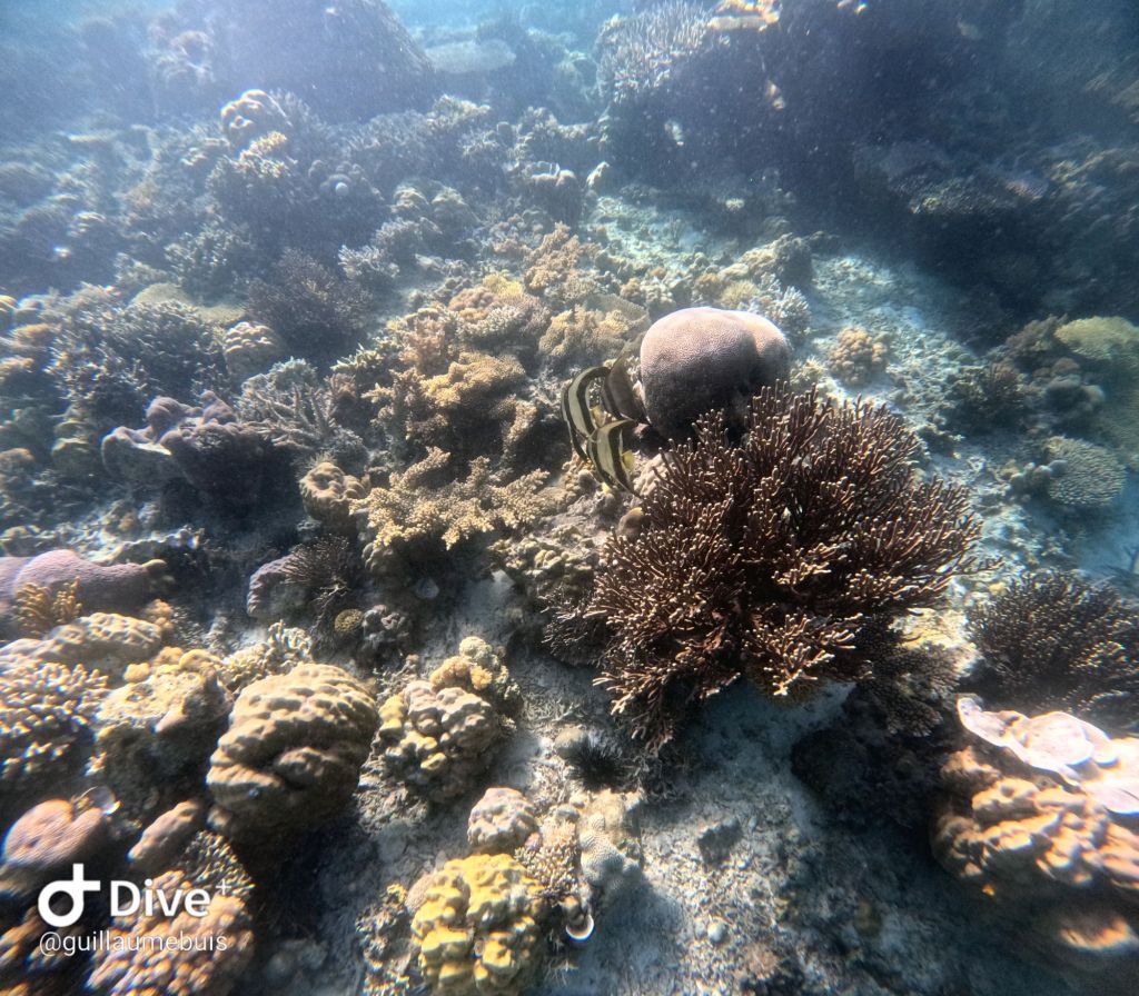 Deuxième arrêt, à côté d’une jolie île déserte avec plage de sable blanc et eau transparente. Le snorkeling est très joli : les coraux sont magnifiques, et nous avons pu voir de très beaux batfish.