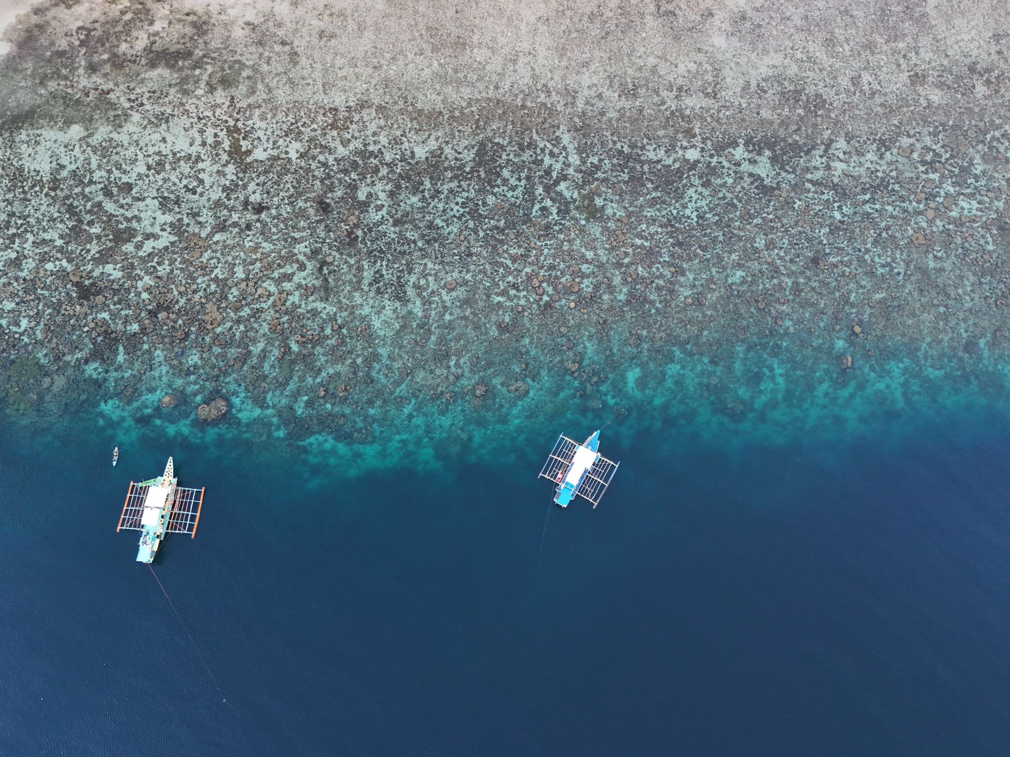Premier arrêt après une petite heure de bateau : une jolie petite île avec un banc de sable fin à la forme tout à fait suggestive, surtout vue du ciel ! Nous sautons du bateau et profitons du snorkeling autour de l’île.
