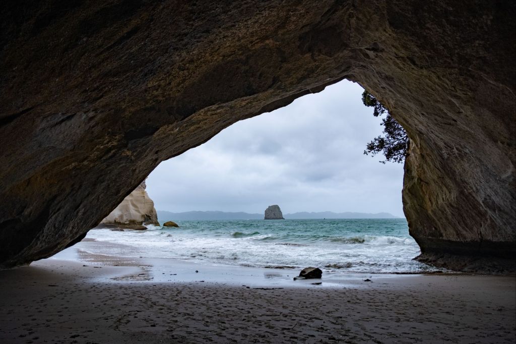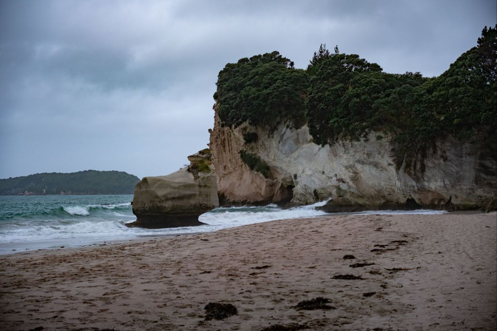 Cathedral cove (péninsule de Coromandel) ❤️ : jolie promenade jusqu’à une arche de pierre naturelle sur une belle plage, sentier officiellement fermé mais très facile à emprunter