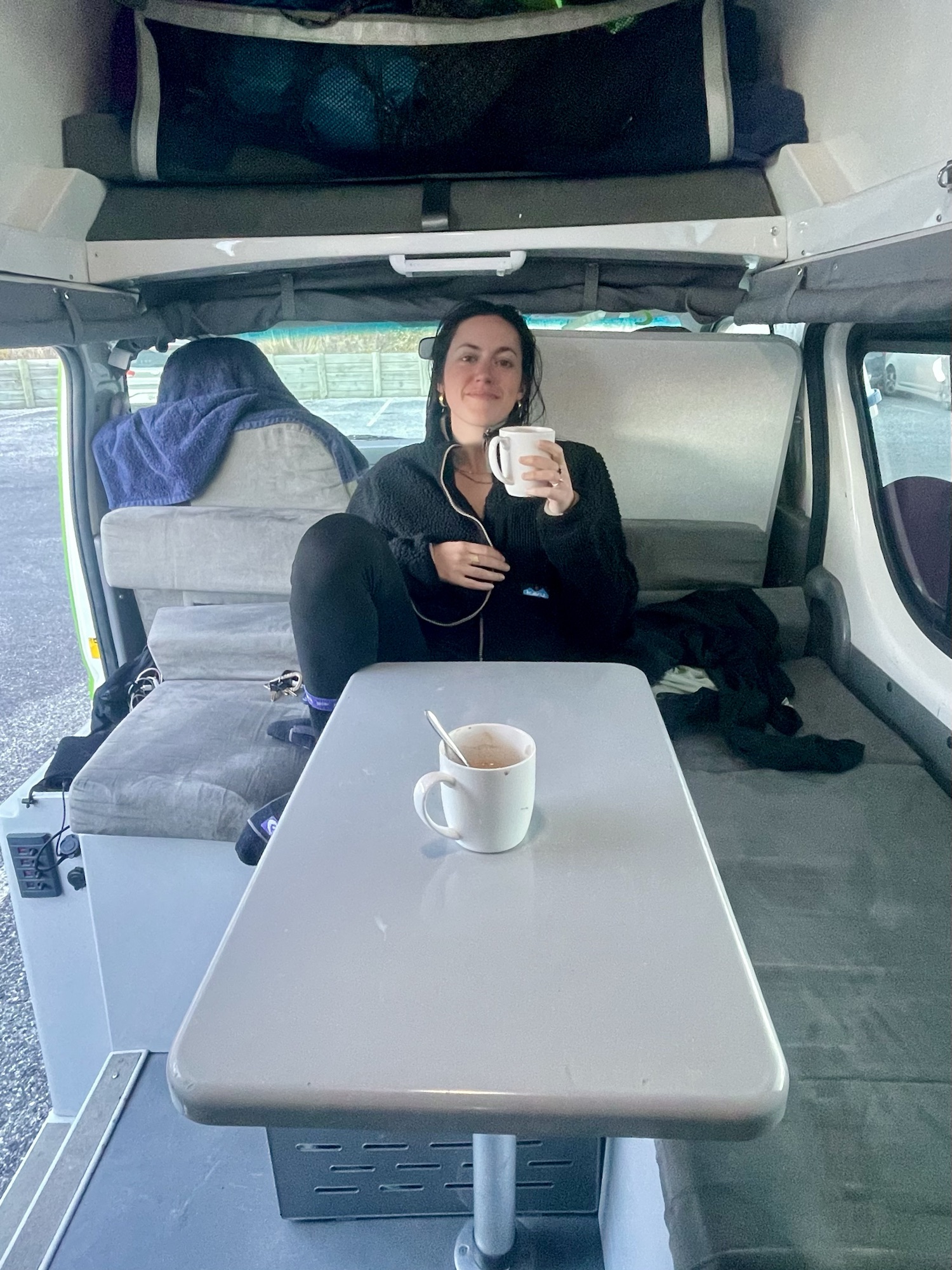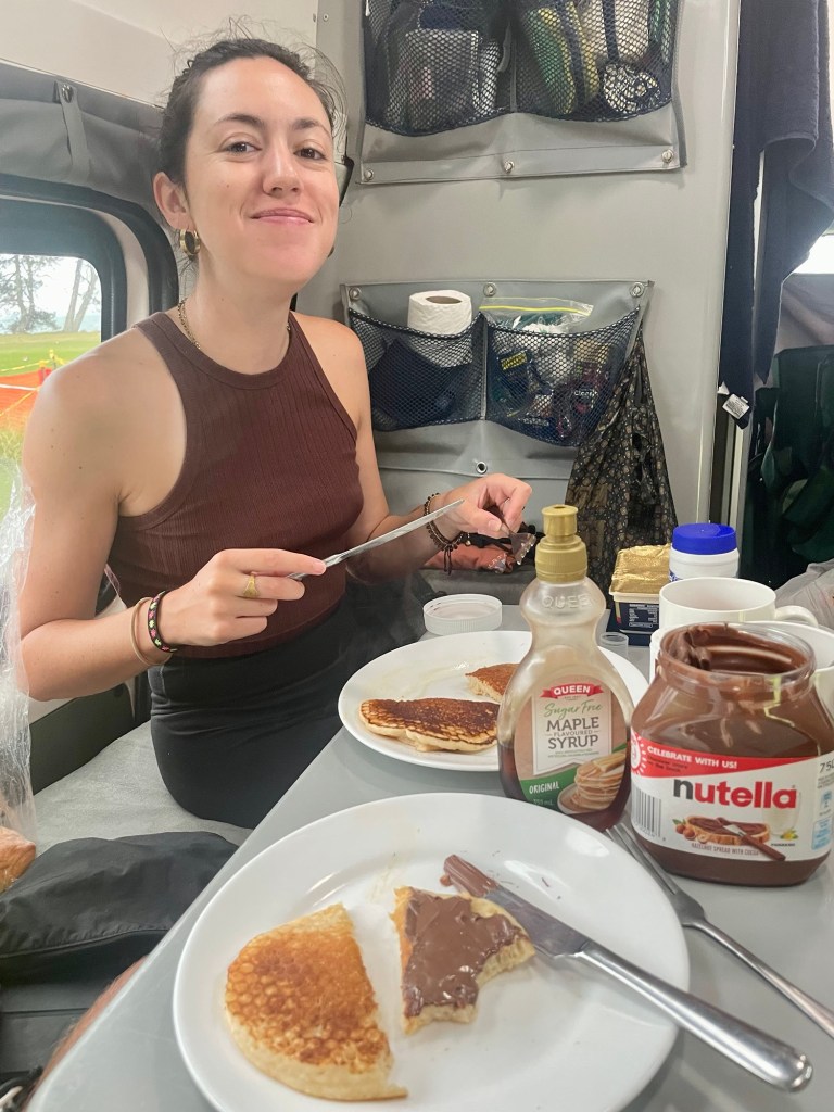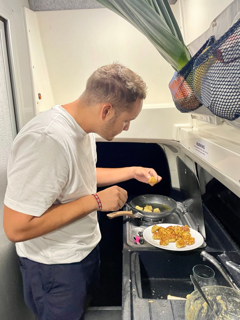 Nous reprenons le van et redescendons la péninsule jusqu’à un emplacement de camping gratuit, où nous arrivons de nuit. Après une bonne douche chaude dans le van, nous mangeons des pâtes au potiron et au fromage (un vrai régal), et filons nous coucher.