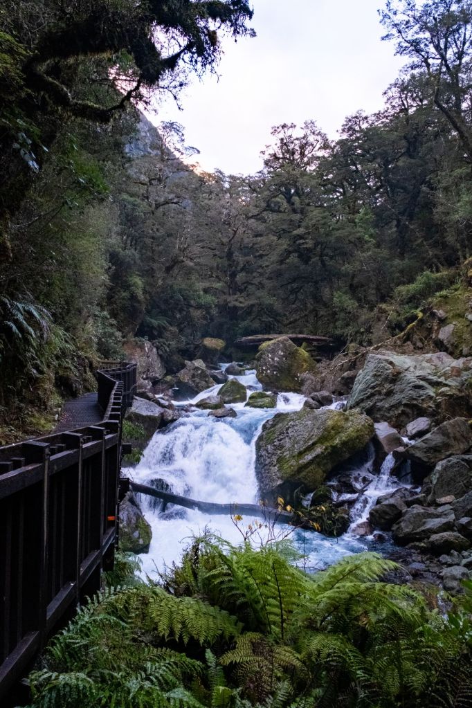 Après avoir profité de la jolie vue sur le lac dès le réveil, nous entamons notre journée de route en direction de la région du Fiordland. Comme son nom l’indique, c’est la région des fjords néo-zélandais, et le paysage promet d’être grandiose.
