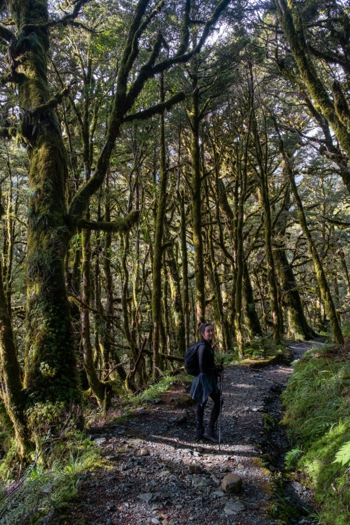Nous partons ensuite pour une petite randonnée jusqu’au Lake Marian pour la mise en jambes. Nous grimpons sur un petit sentier boueux et plein de racines, au cœur de la forêt.