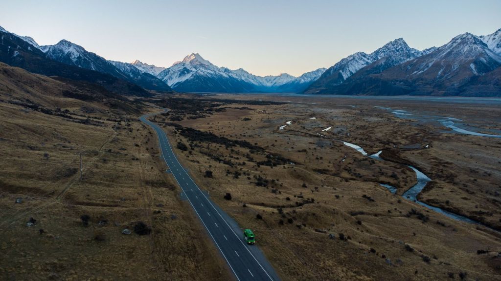 Nous arrivons en fin de journée au bord du lac Pukaki. La couleur de l’eau est incroyable, d’un bleu glacier magnifique. Et surtout, nous avons vue jusqu’au mont Cook qui est juste en face. Notre camping a une vue incroyable, et le coucher de soleil est mémorable. Dès demain, nous partons explorer les lacs et nous nous rapprocherons du mont Cook, point culminant de l’île.