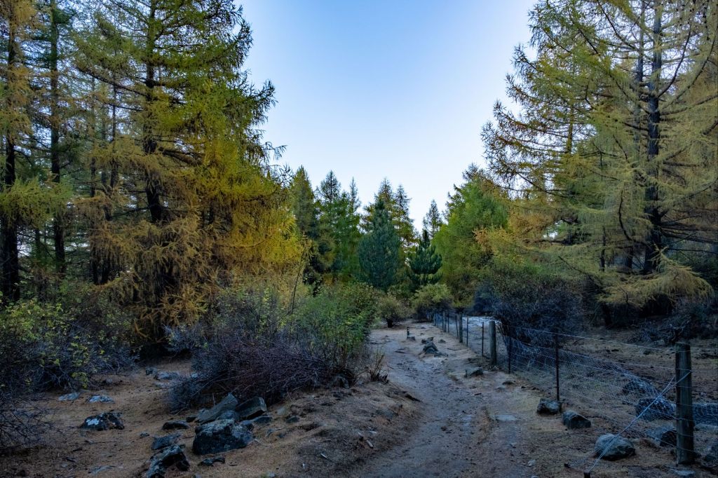 La redescente est plus abrupte, sur un petit sentier au milieu d’une forêt de sapins qui ont revêtu leurs couleurs d’automne.