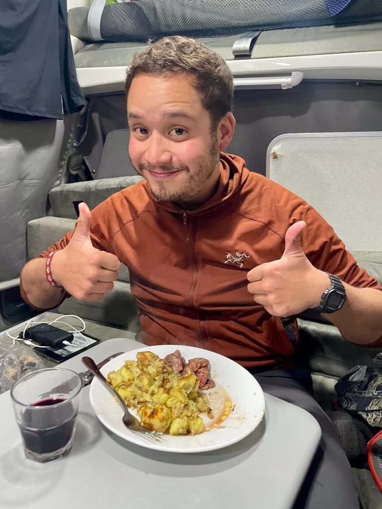 Pour parfaire cette belle journée, Guillaume cuisine un T-bone avec des petites pommes de terres sautées, que nous dégustons avec du vin rouge australien. Demain, nous nous dirigeons vers la côte pour notre dernière étape avant la fin de notre voyage en Nouvelle-Zélande.