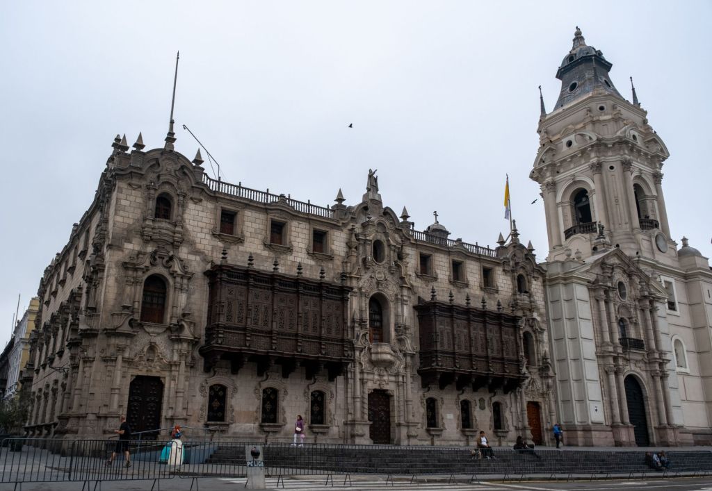 Après avoir posé nos sacs dans un hôtel (moyennant quelques soles), nous partons à la découverte du quartier. Sur la place principale se trouvent le Palace du gouvernement ainsi que la Cathédrale de Lima.