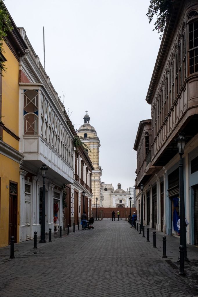 Comme d’habitude, le chauffeur de notre bus de nuit a carburé et nous arrivons en avance à Lima… à 6h du matin. Tout est fermé, nous ne trouvons pas de café pour se reposer et prendre un petit déjeuner, nous marchons donc avec nos gros sacs jusqu’au quartier historique de Lima, et nous faisons l’ouverture d’une boulangerie à 7h.