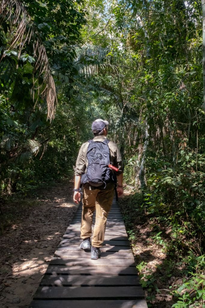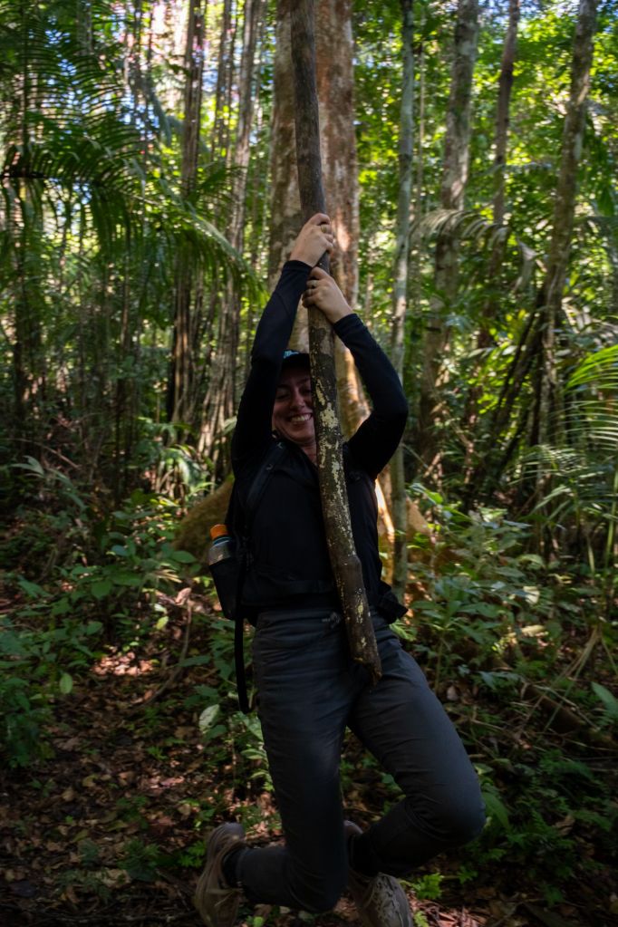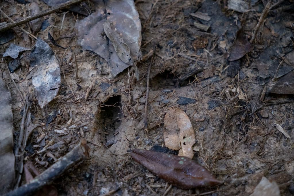 Notre promenade du matin dans la forêt n’est pas très fructueuse : à part des fourmis et un gros scarabée nous ne voyons pas grand chose. Nous devinons des traces de tapir mais nous n’en voyons pas la couleur malheureusement.