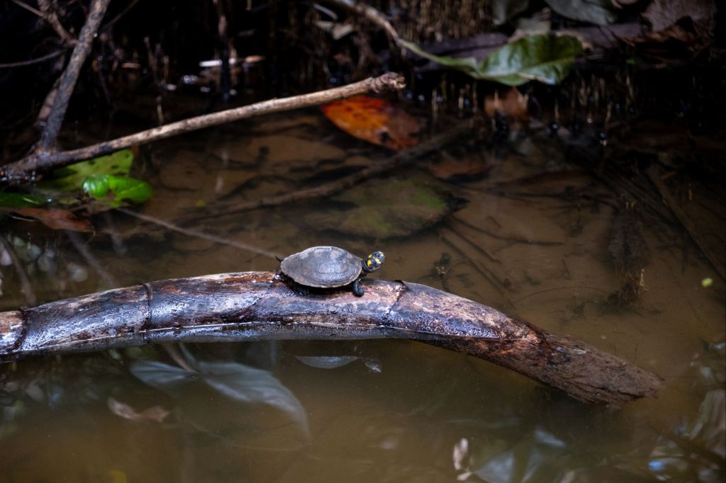 Sur le retour, en bateau, nous croisons des familles de tortues qui se prélassent sur des souches qui dépassent de l’eau.