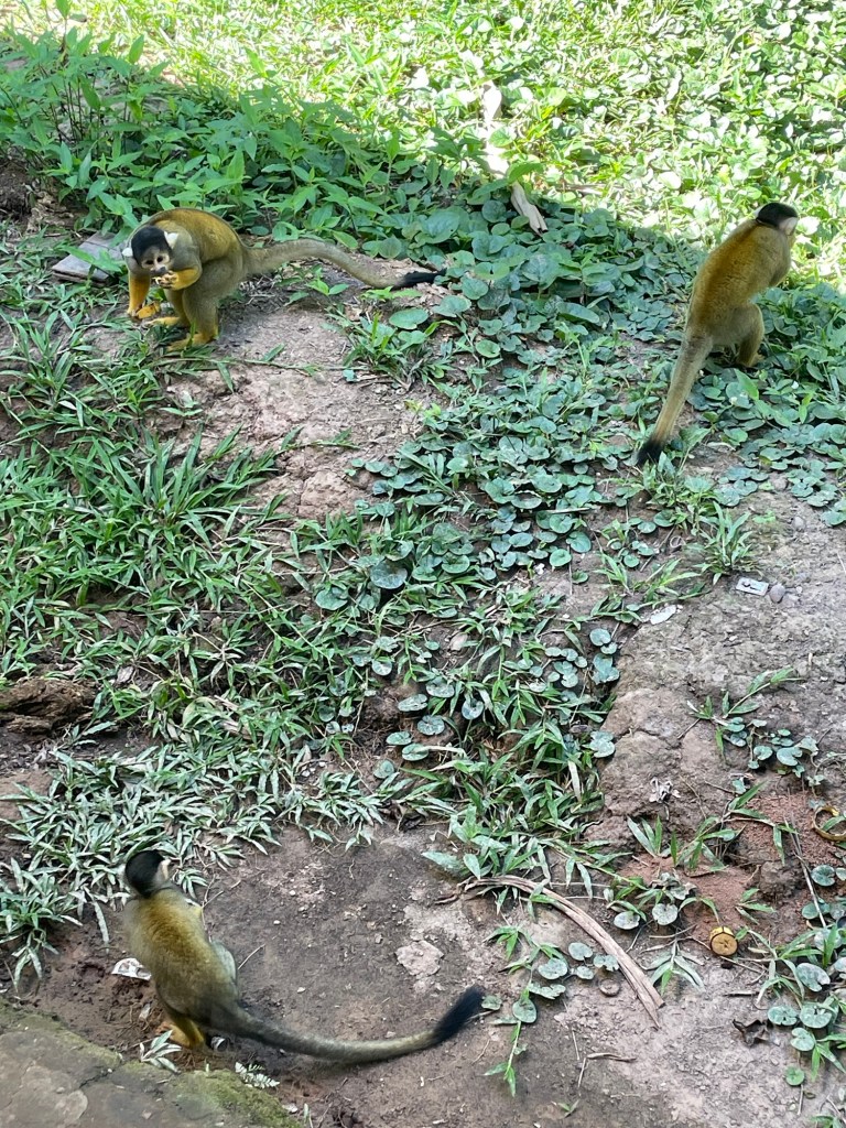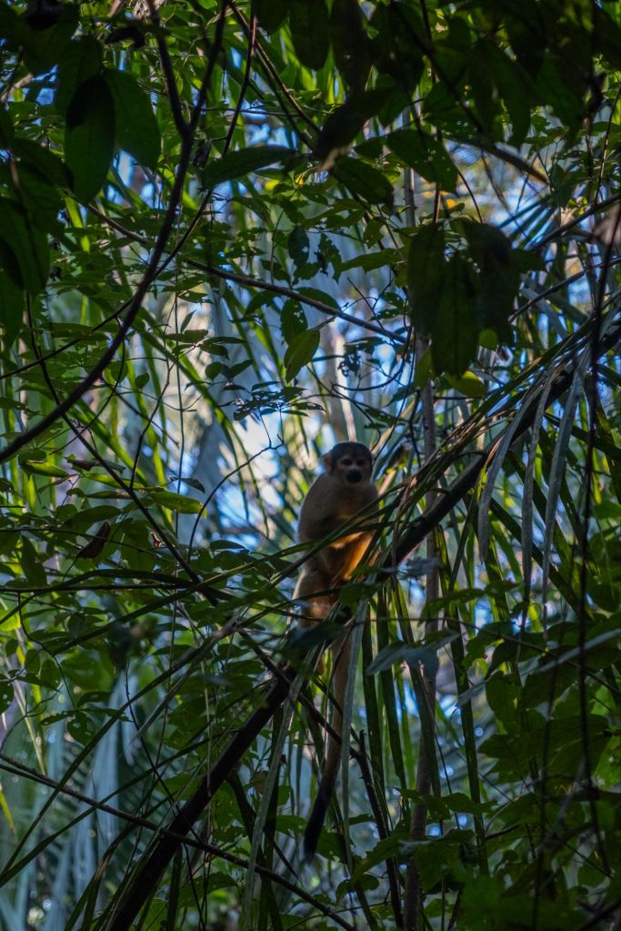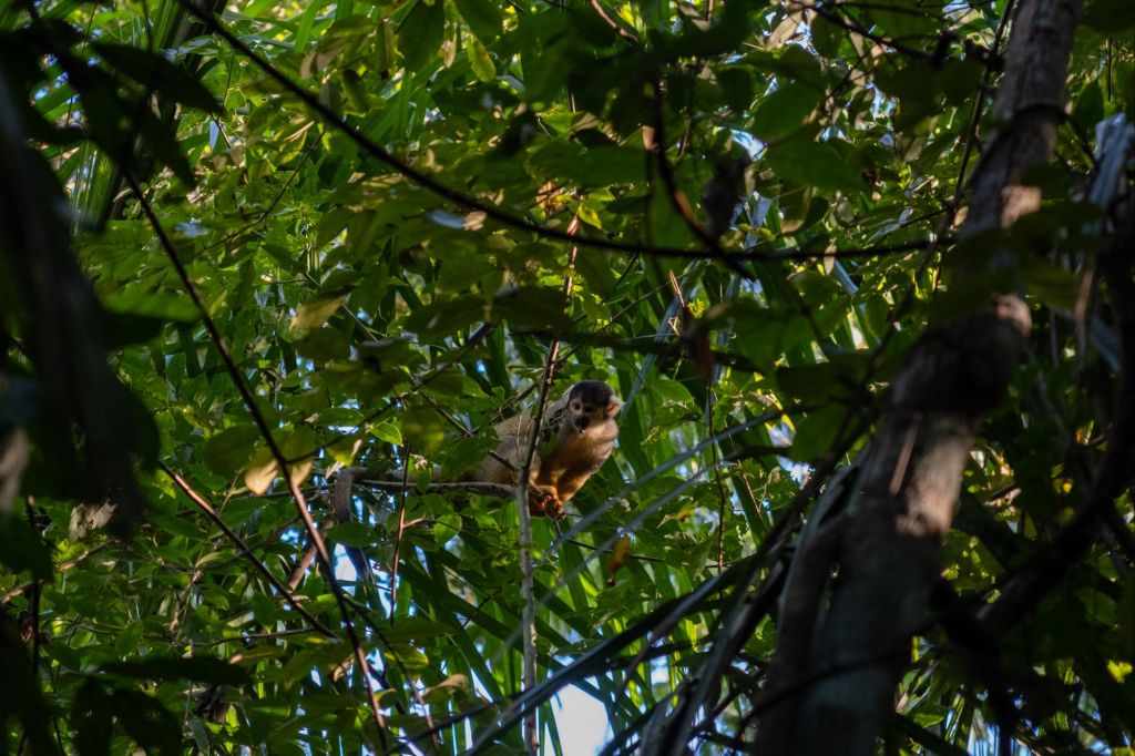 Sur le chemin du retour, dans la forêt, nous rencontrons toute une famille de singes écureuils qui jouent dans les arbres.