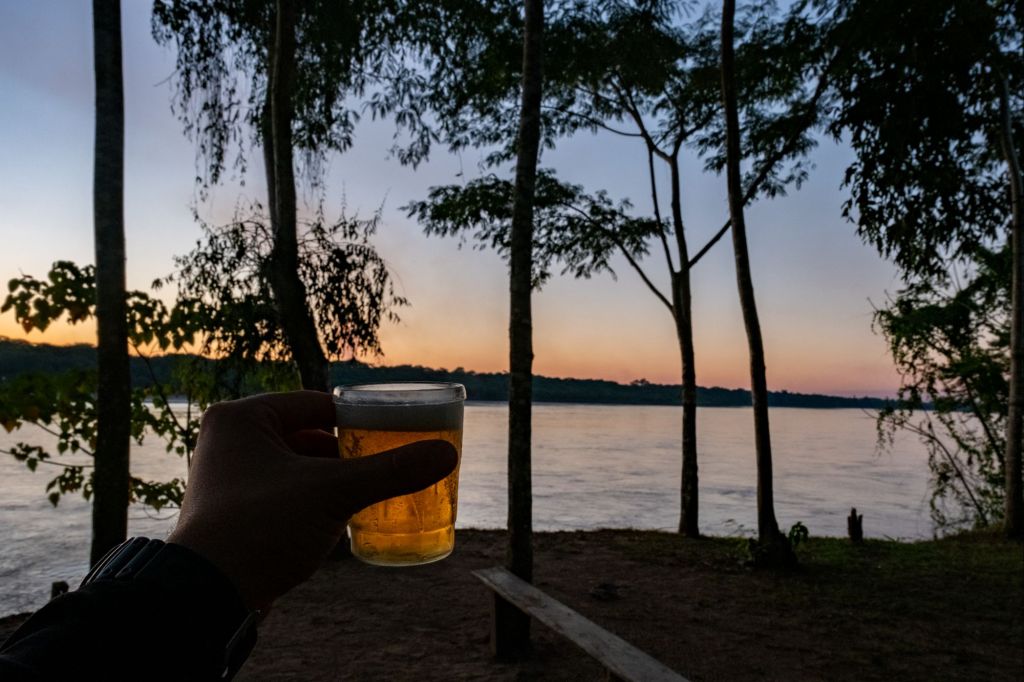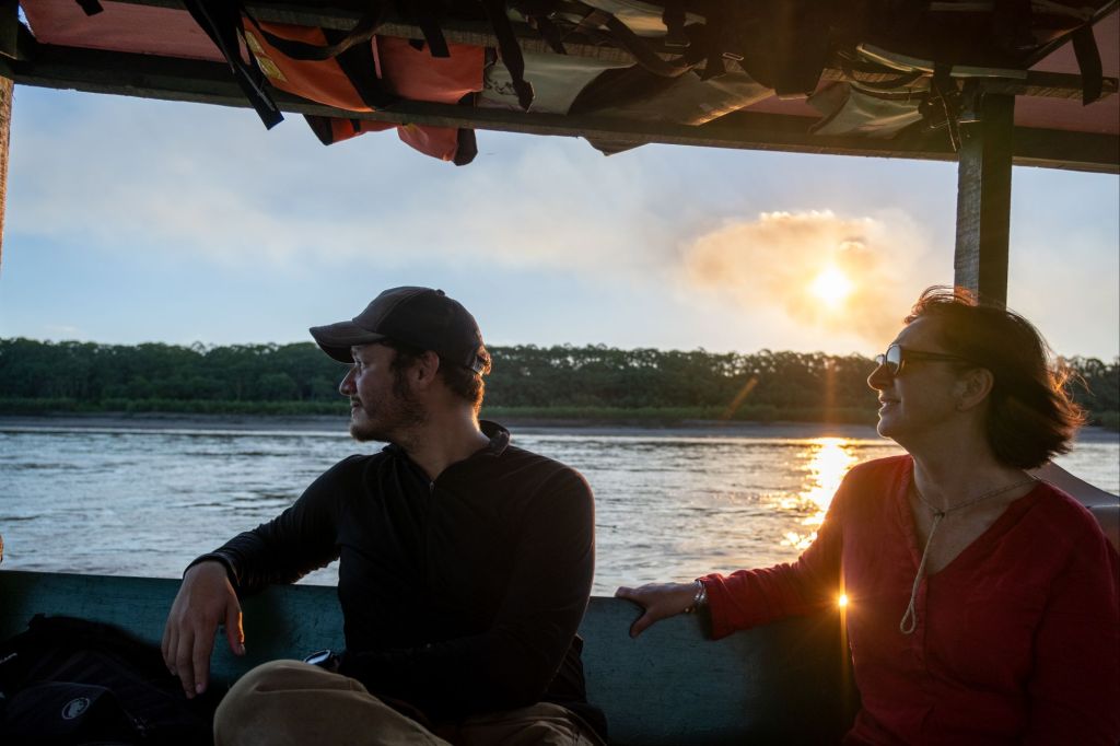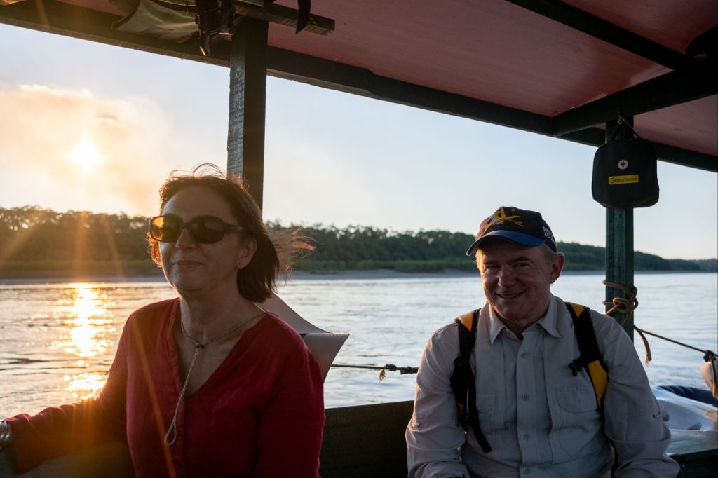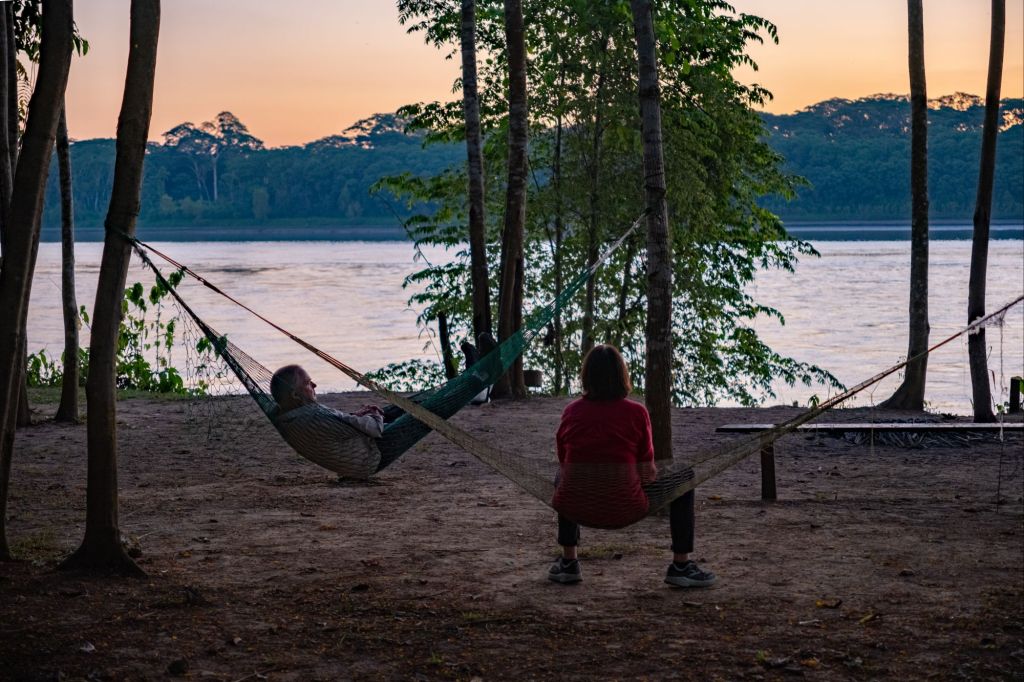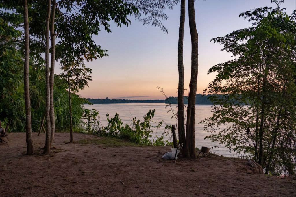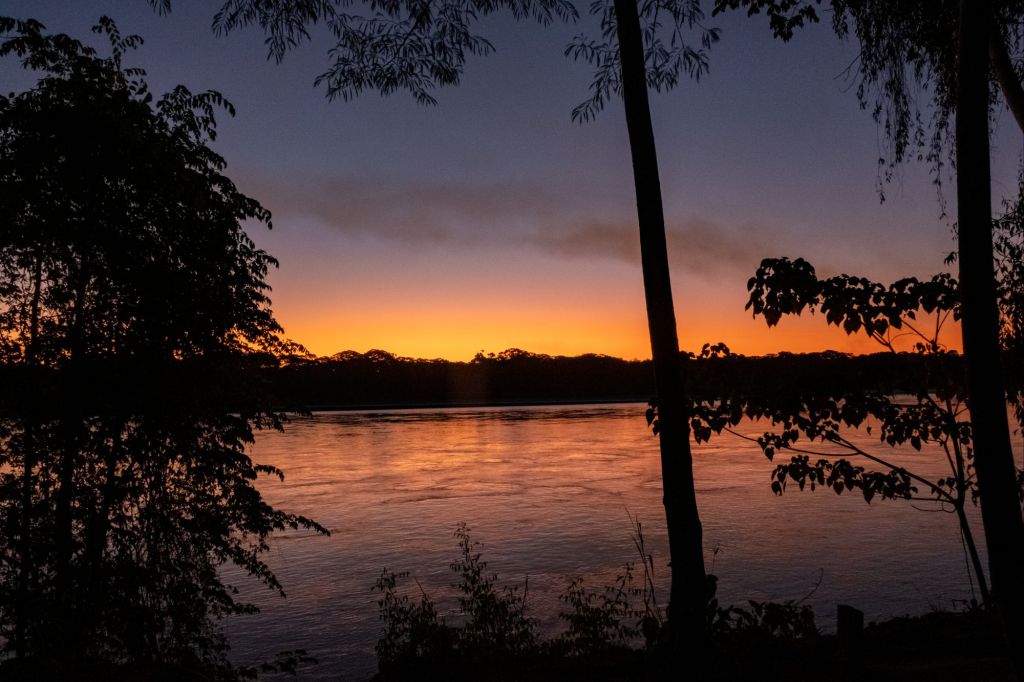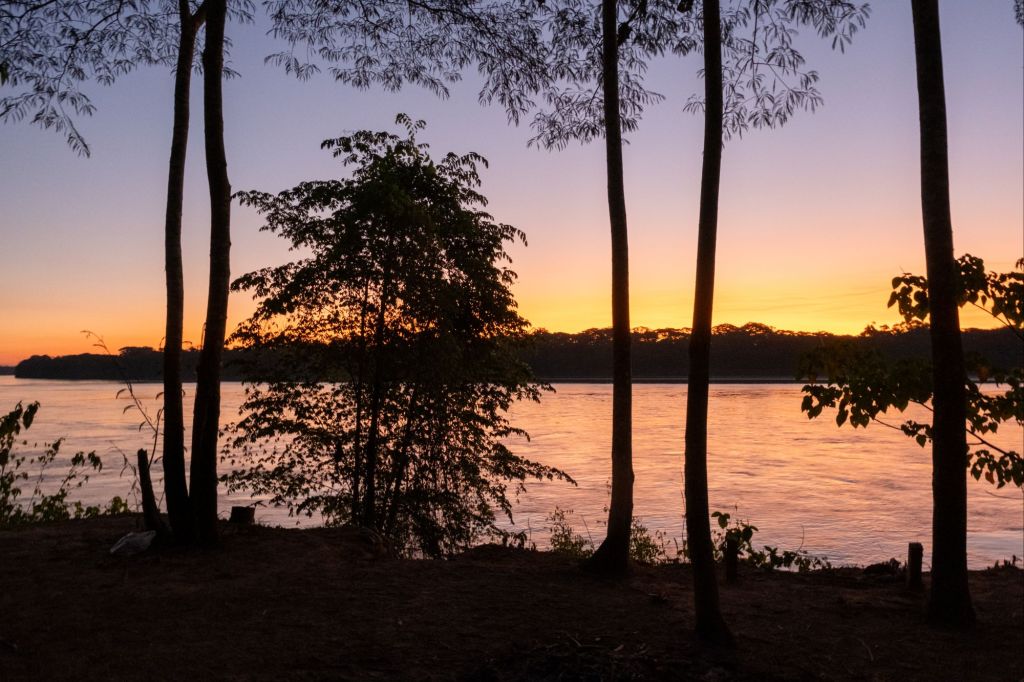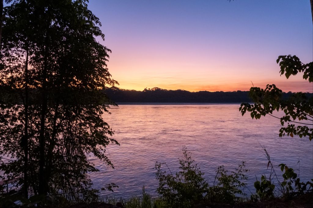Nous rentrons pile à l’heure pour le coucher de soleil sur le Rio Madre de Dios depuis notre lodge, c’est très joli.
